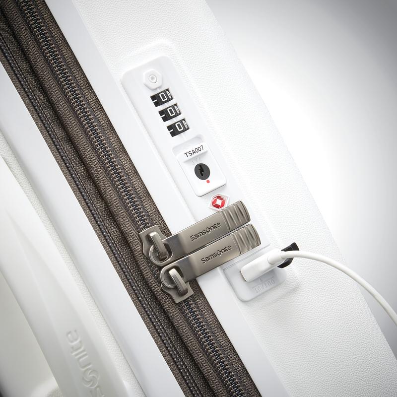 USB port with protective cover integrates into the TSA-approved lock panel for streamlined design and charging convenience on the Carry-On (battery not included)