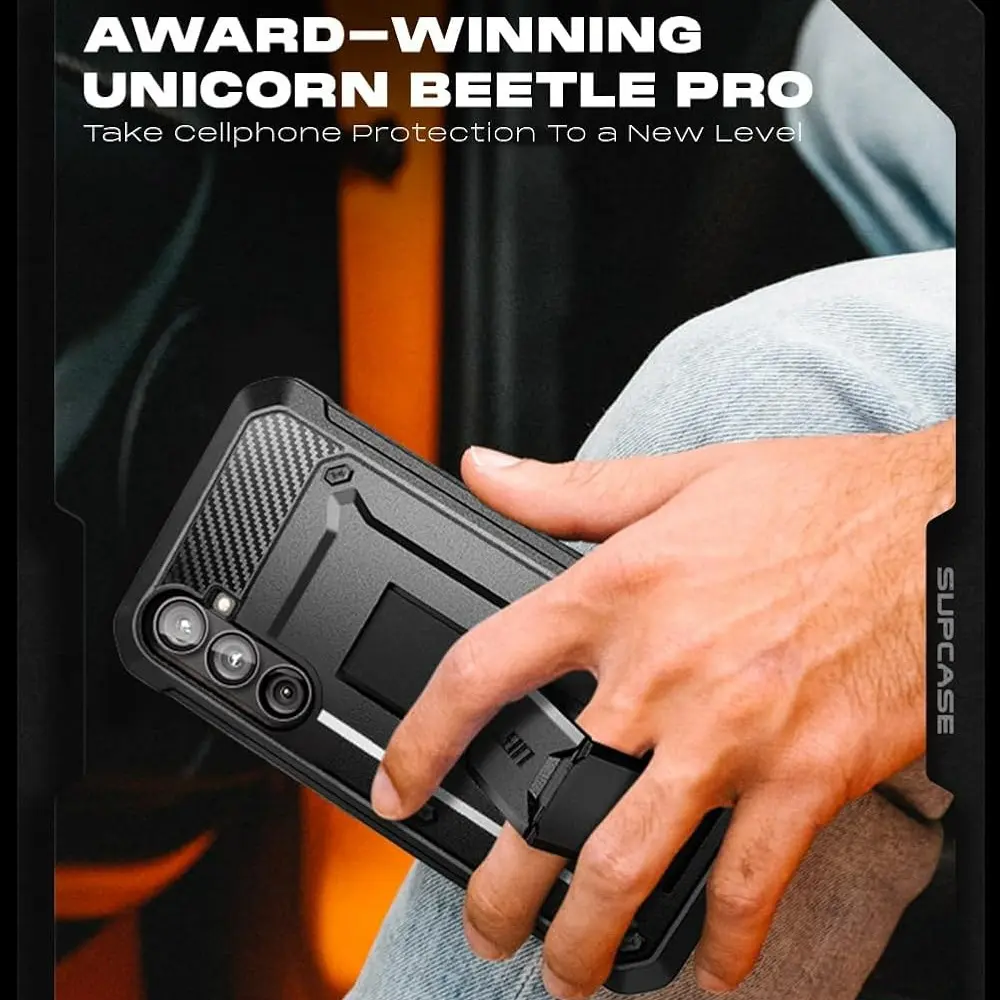 Ever drop your phone and wince? The SUPCASE Unicorn Beetle Pro case is here to save your Samsung Galaxy S22 or S23 series from everyday accidents. With military-grade protection featuring a dual-layer hybrid design, this case combines a tough polycarbonate back with a flexible TPU bumper to absorb shocks and drops up to 20 feet. The built-in kickstand lets you binge your favorite shows hands-free, whether you prefer portrait or landscape mode. Plus, the detachable rotatable holster with a belt clip makes carrying your phone around super convenient. Designed with precise cutouts, you get full access to all buttons and ports without removing the case. The slip-resistant texture ensures a secure grip, reducing accidental slips. While it doesn't include a built-in screen protector, its rugged design guards your phone’s body against scratches and impacts. Available in multiple colors like blue, red, green, and black, it’s a stylish yet practical choice for your Galaxy. Ready to protect your phone in style? Grab the SUPCASE Unicorn Beetle Pro and enjoy peace of mind on the go!