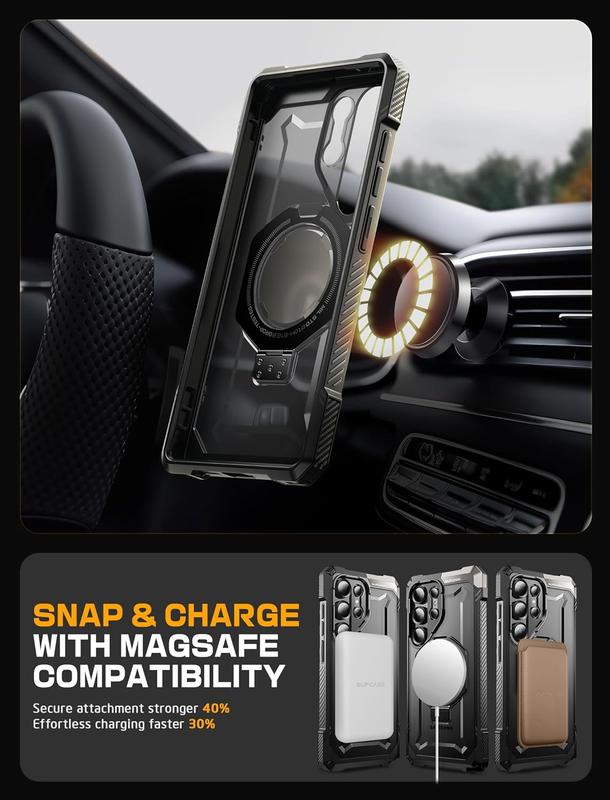 Ever worry about dropping your pricey Galaxy S25 Ultra? Meet the SUPCASE Unicorn Beetle Grip, your phone’s new best friend. This case packs serious military-grade protection with four-corner airbags that absorb shocks from drops up to 15 feet. Plus, the raised bezels keep your screen and camera lens safe from scratches when you set your phone down. But protection isn’t all—it’s smart too. The built-in N52 magnet means your case plays perfectly with MagSafe wireless chargers, car mounts, and more, so you never have to remove it. Need to binge-watch or video chat hands-free? The sturdy aluminum kickstand lets you prop your phone at multiple angles for comfy viewing. The slim, anti-slip grip design keeps your phone secure in your hand without adding bulk. Snap it on your Samsung Galaxy S25 Ultra 6.9 inch (2025 release), and you’re set. Inside the box: the magnetic, shockproof SUPCASE Unicorn Beetle Grip case with kickstand ready to protect and impress. Ready to give your phone top-tier protection with style and convenience? Grab this case and enjoy peace of mind every day!