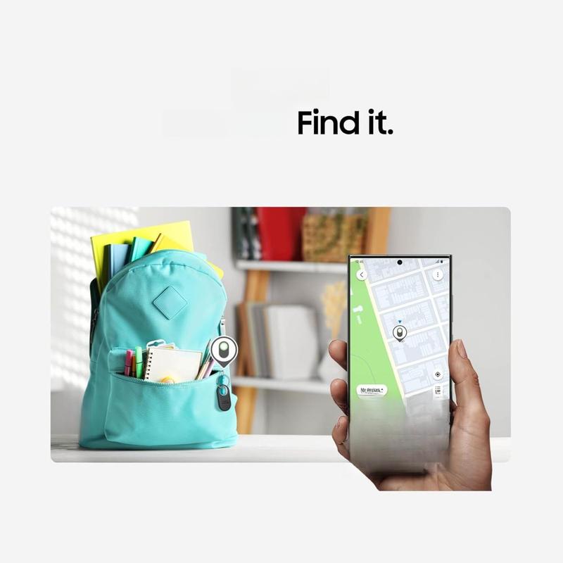 ·REDESIGNED TO DO MORE: The redesigned Galaxy SmartTag2 is made so you can keep calm and keep track; Its design makes it easy for you to tag and carry your belongings
