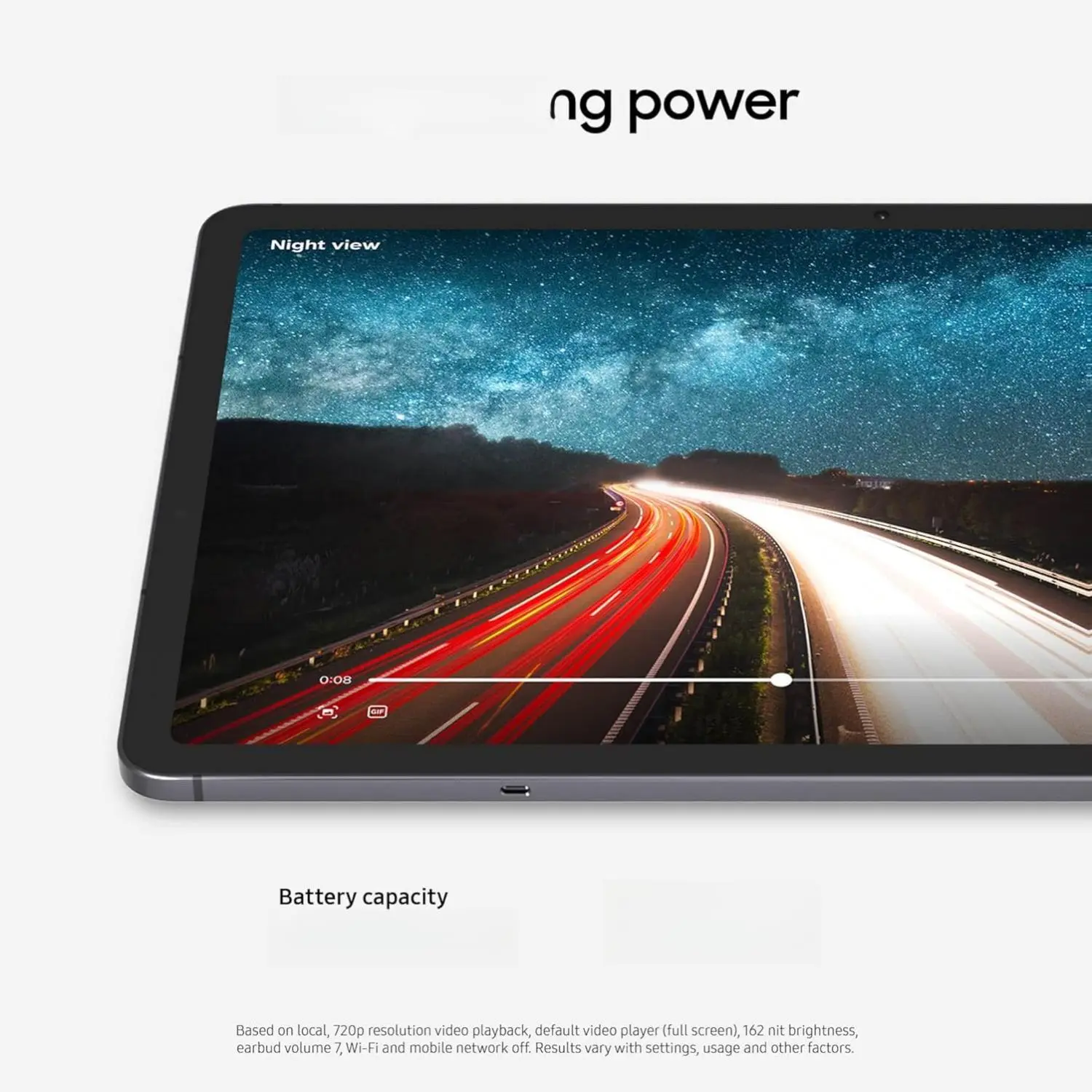 ⁸Based on local, 720p resolution video playback, default video player (full screen), 162 nit brightness, earbud volume 7, Wi-Fi and mobile network off. Results may vary with settings, usage and other factors.