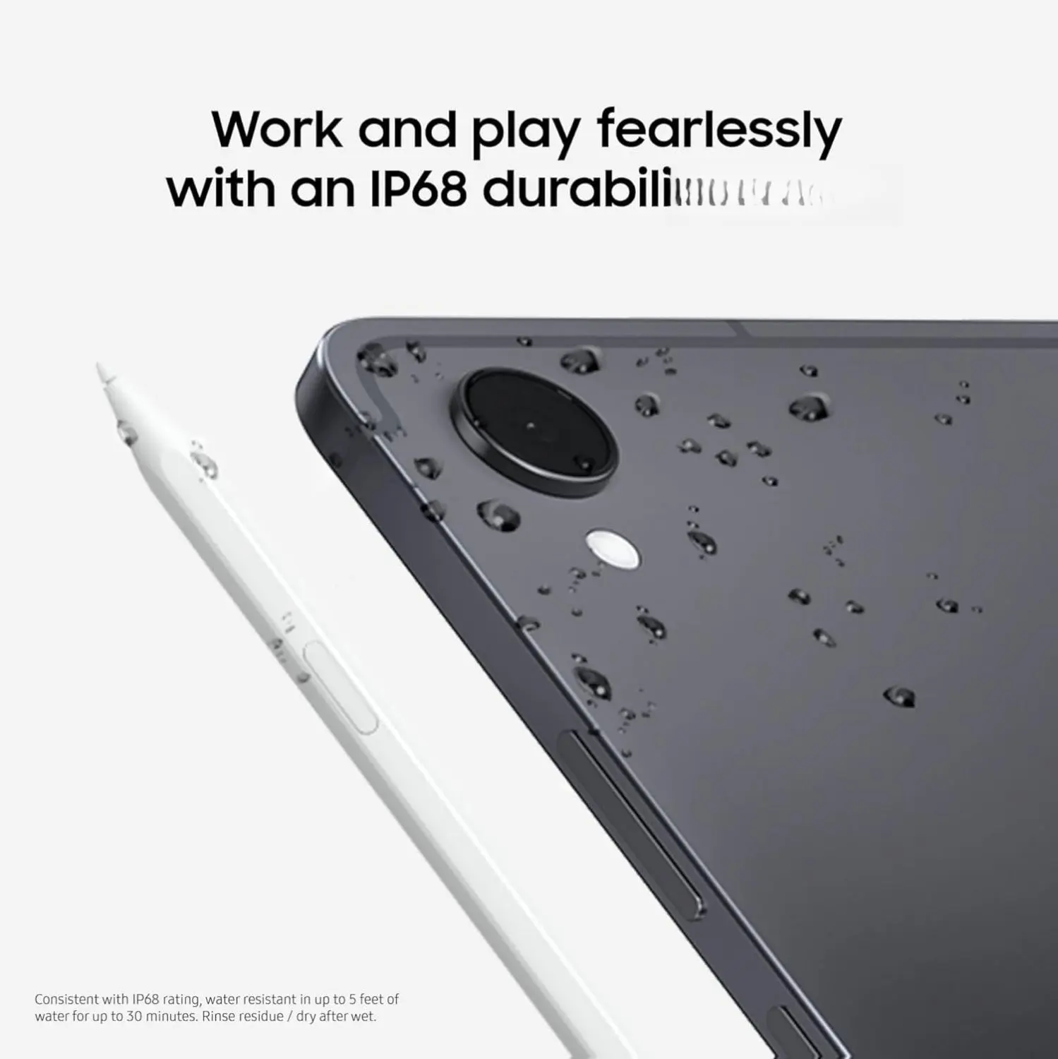·STANDS UP TO THE UNEXPECTED: Wherever your day takes you, your Galaxy Tab S11 won’t let a little water or dust hold you back. With an IP68 durability rating,³ it’s made to stand up to the unexpected, even 1.5 meters of fresh water.