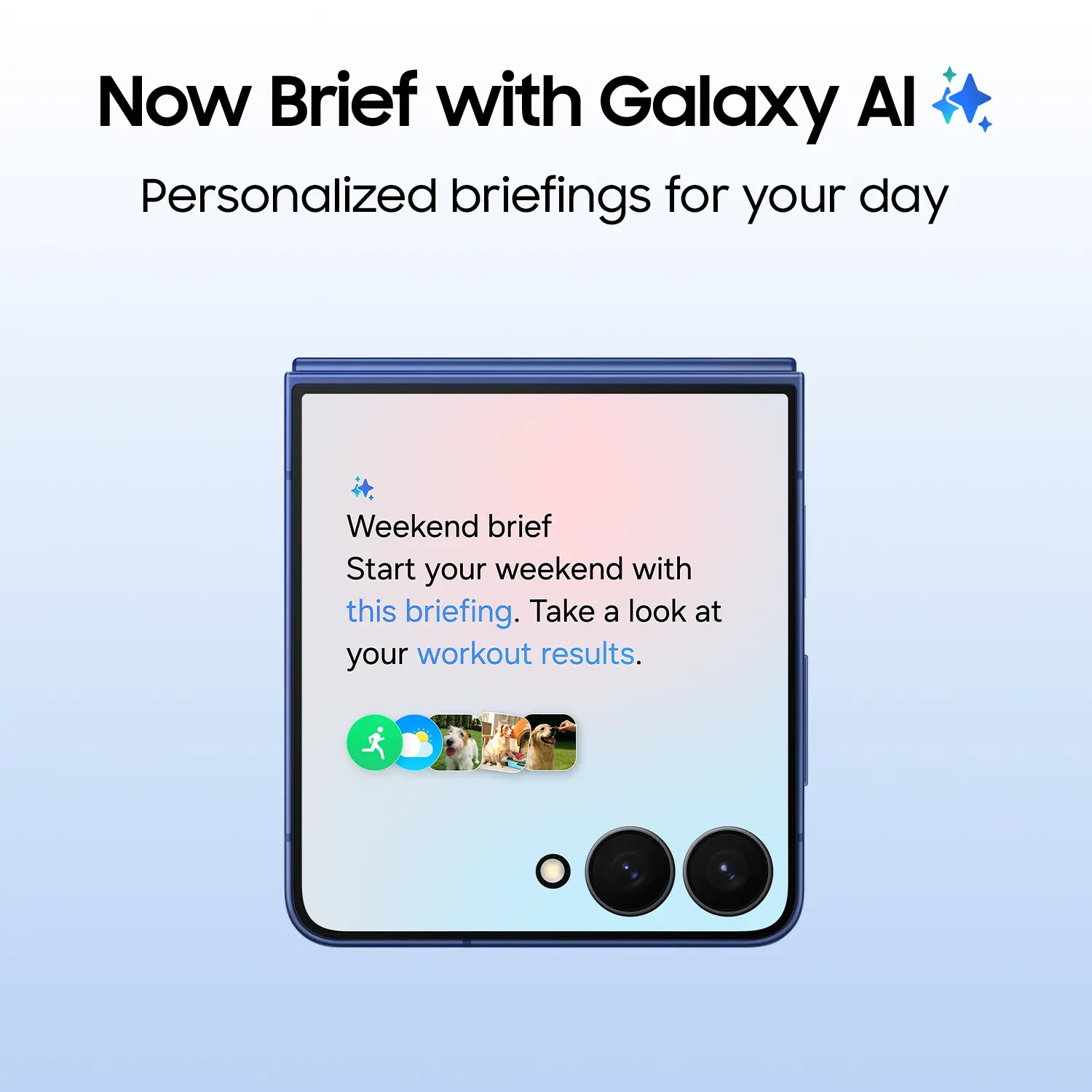 ·GOOGLE GEMINI, MEET FLEXWINDOW: FlexWindow on Galaxy Z Flip7 unlocks a smarter, faster way to navigate your day. Talk to Gemini for hands-free help, or tap into personalized updates using Now Brief with Galaxy AI, all without opening your phone.², ³