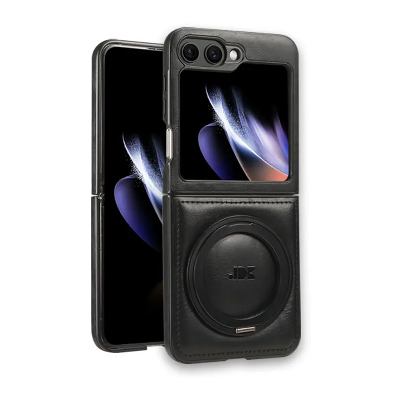 Metal 360° Rotating Stand Phone Case for Samsung ZFlip7/ZFlip6/ZFlip5/ZFlip4/ZFlip3 Foldable Screen Magnetic Skin-Friendly Leather Texture Business Full Shockproof Protective Cover