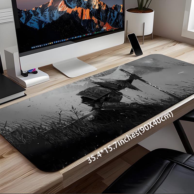 Samurai Warrior Pattern Mouse Pad, Large Gaming Mouse Pad, Aesthetic Desktop Decoration Protective Pad, Non-slip Rubber Pad for Laptop, Desktop Computer Games
