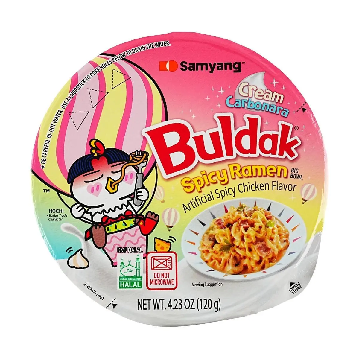 Samyang Buldak Pink Fire Noodles - Double Creamy Cheese Ramen, 120g Big Bowl, Korean Spicy Chicken Instant Noodles