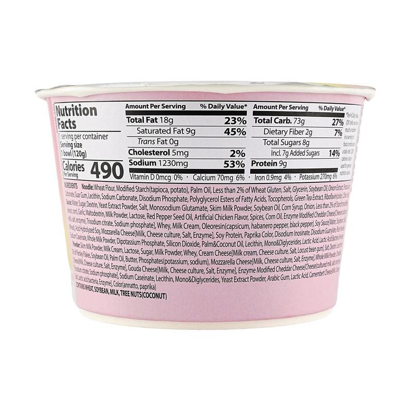 5. Samyang Buldak Pink Fire Noodles - Double Creamy Cheese Ramen, 120g Big Bowl, Korean Spicy Chicken Instant Noodles