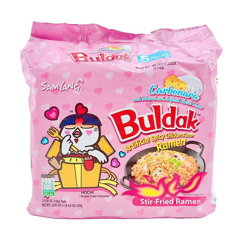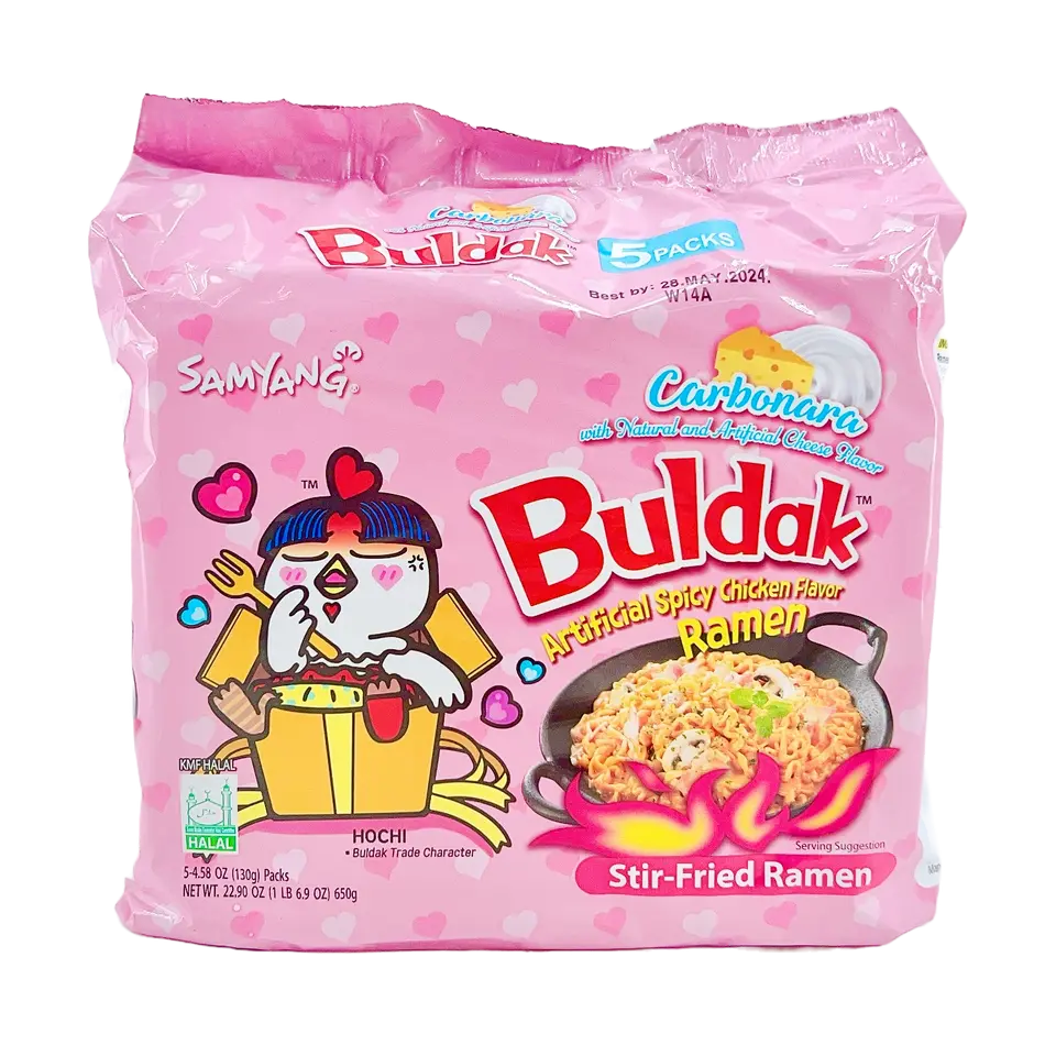Introducing Samyang Buldak Ramen, a fiery collection of five tantalizing flavors to satisfy your cravings for bold heat and rich flavors! Enjoy the creamy Carbonara Hot Chicken, the classic Black Hot Chicken, the savory Hot Chicken Curry, the unique Hot Chicken Jjajang, and for spice enthusiasts, the intense Hot Chicken 2x Spicy.