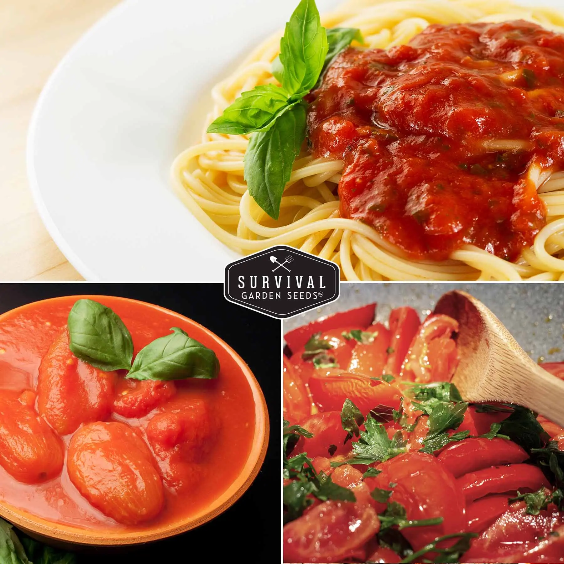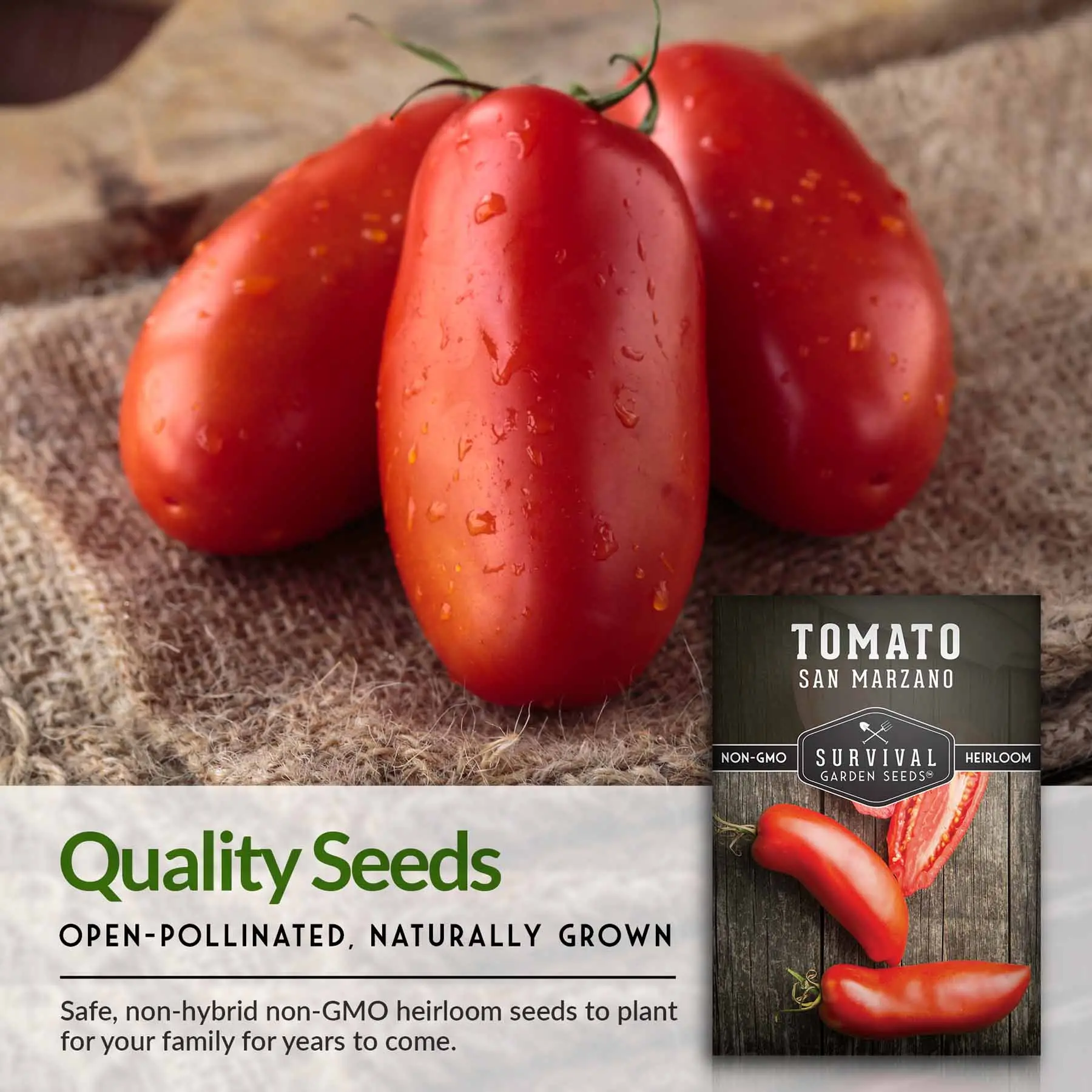 Survival Garden Seeds San Marzano Tomato Seeds is the perfect Italian tomato. Used in cooking spaghetti, lasagna and pizza sauces. You'll be so glad you planted these in your home vegetable garden.