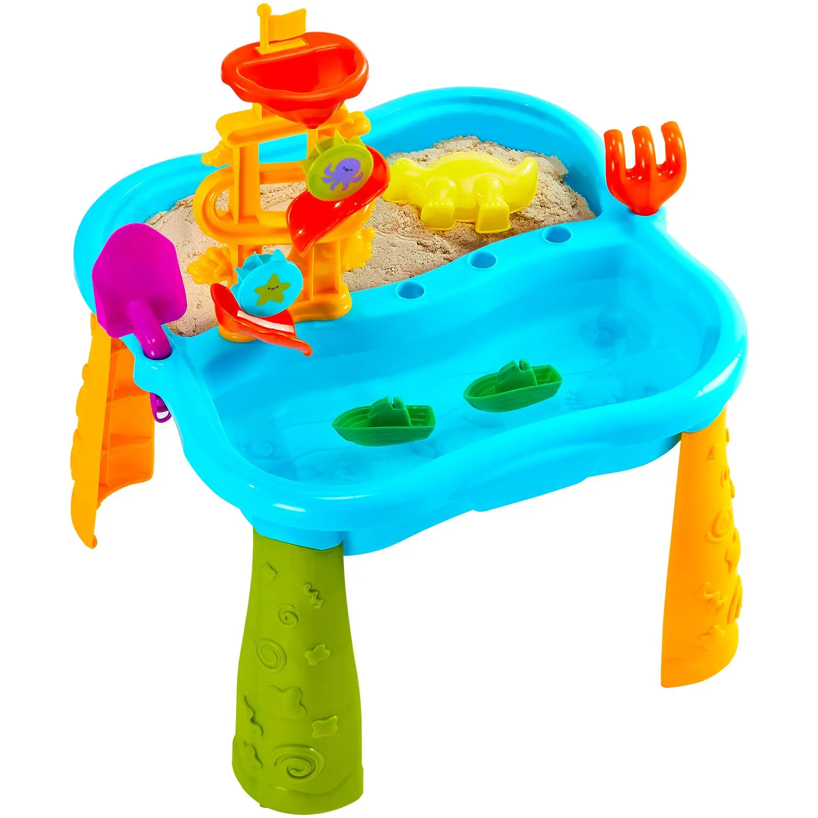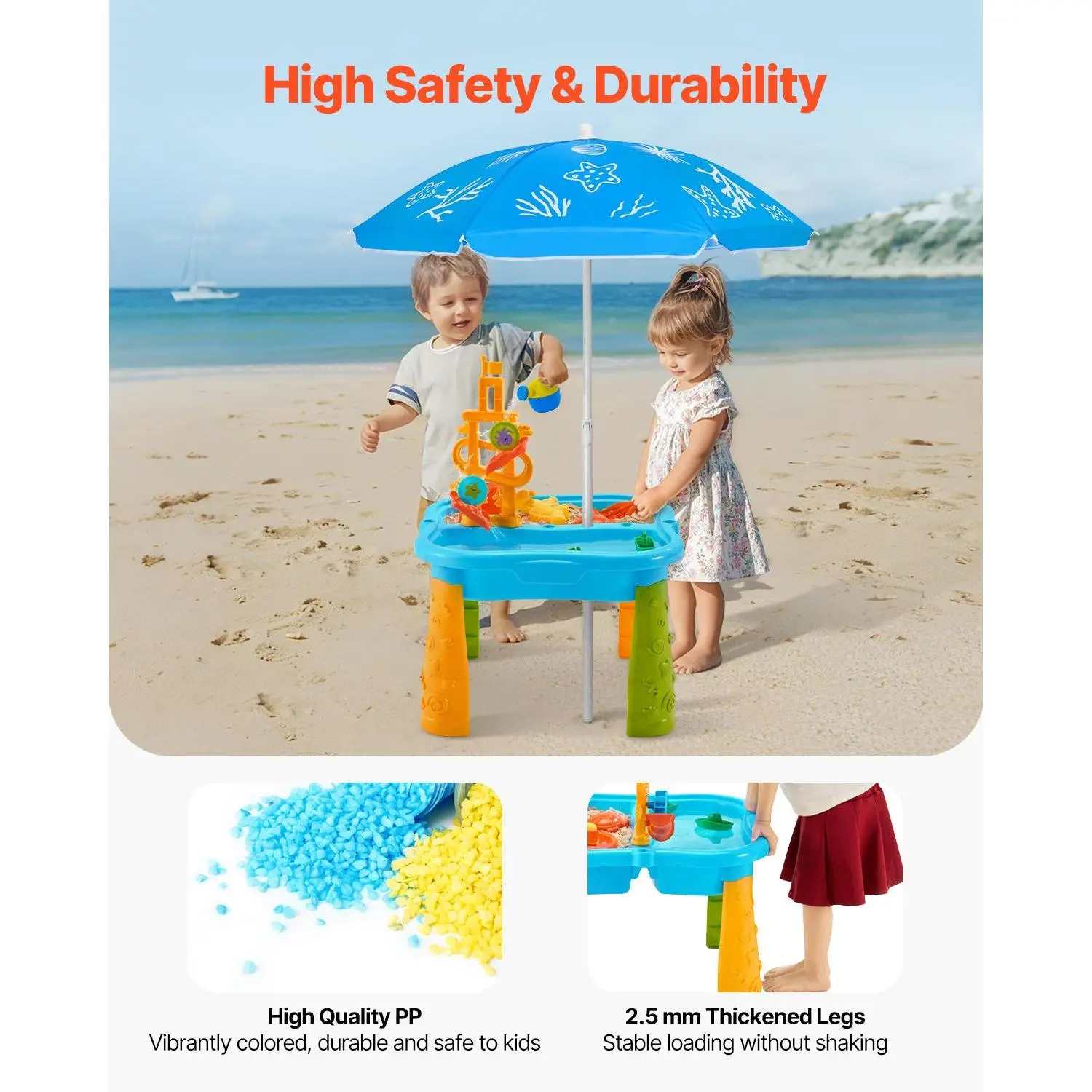 • 2-in-1 Versatile Fun: VEVOR sand and water table creates joyful and versatile water and sand play experiences for kids aged 3+ all year round. Our activity sensory playset includes 11PCS interesting toy accessories, inspiring children's creativity, promoting sensory exploration, social interaction, and motor skills development.