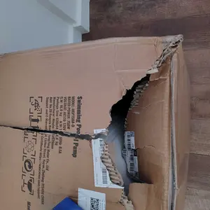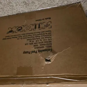 The box was delivered beat up. Hopefully the pump works.