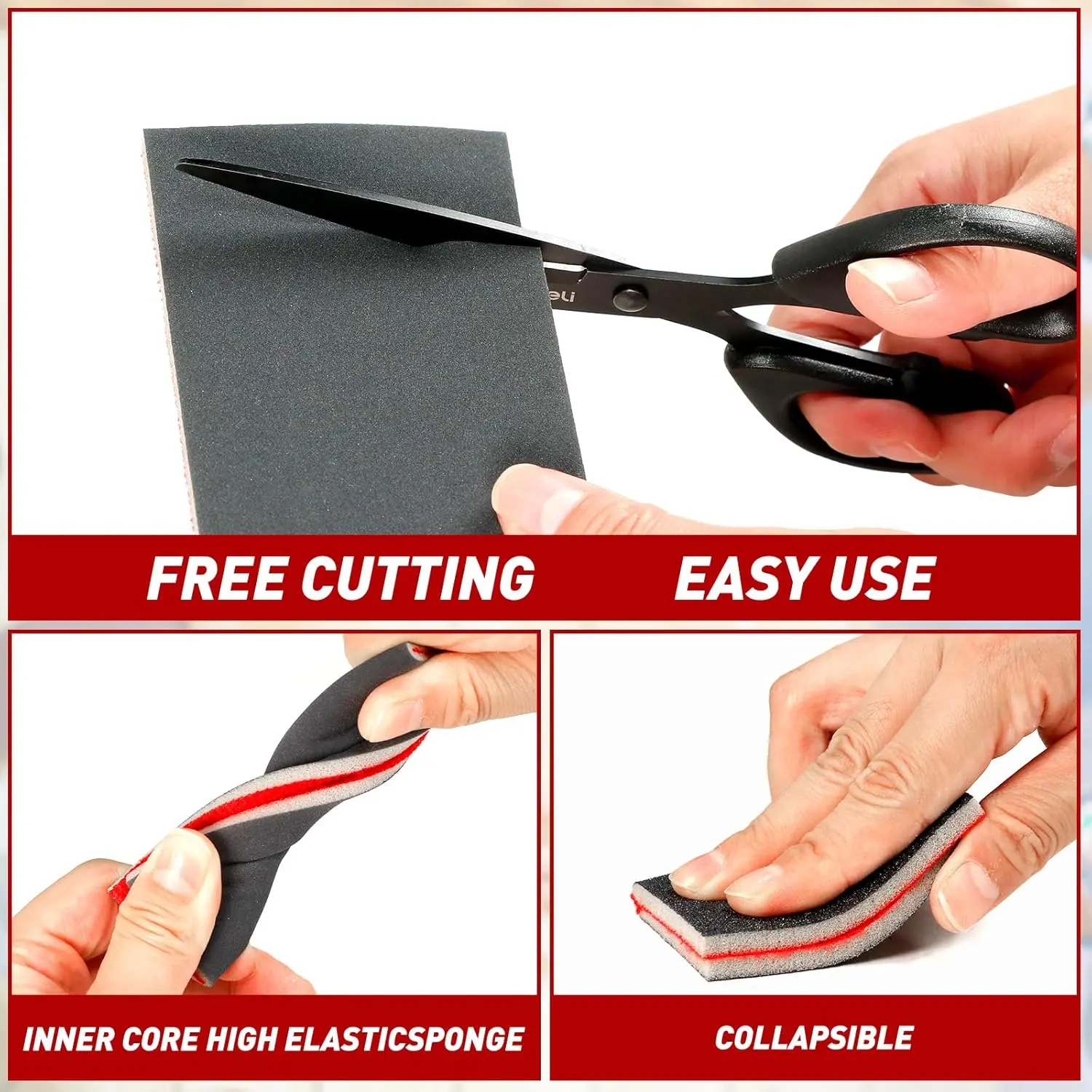 Ergonomic & Contours Easily: The sanding block shape fits comfortably in hand, while the flexible foam adapts to curves and tight corners, ensuring even sanding on flat or irregular surfaces.