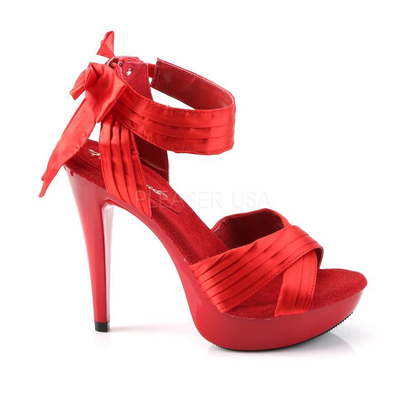 5. Fabulicious COCKTAIL-568 Red Satin Stiletto Heel Sandals with Criss-Cross Straps & Bow Platform Women's Summer Footwear