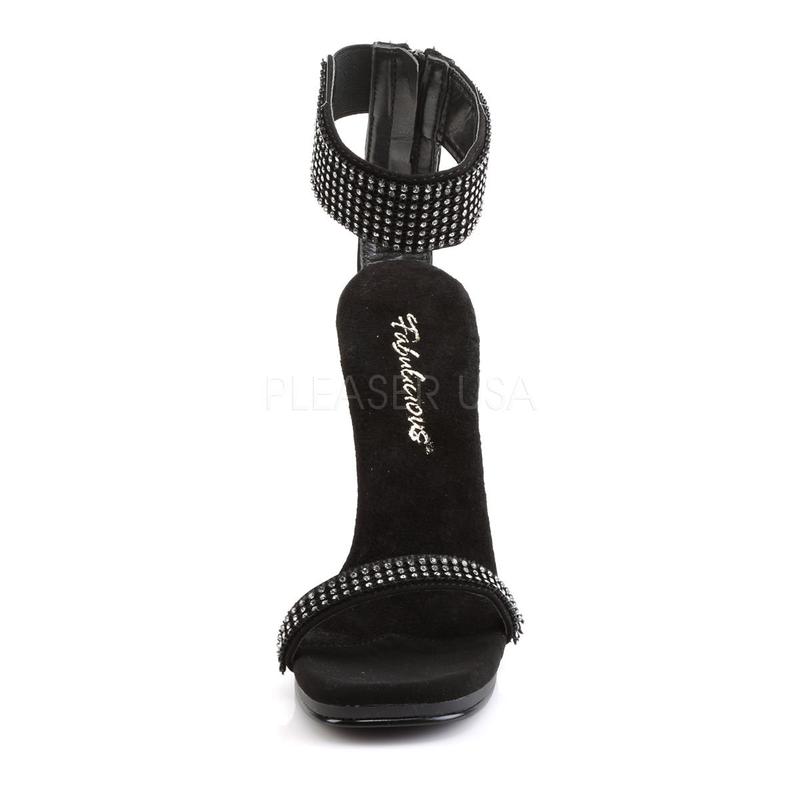 5. 4 Inch Heel CHIC-40 Black Nubuck Stiletto Evening Shoes with Rhinestone Straps & Mini Platform Sole