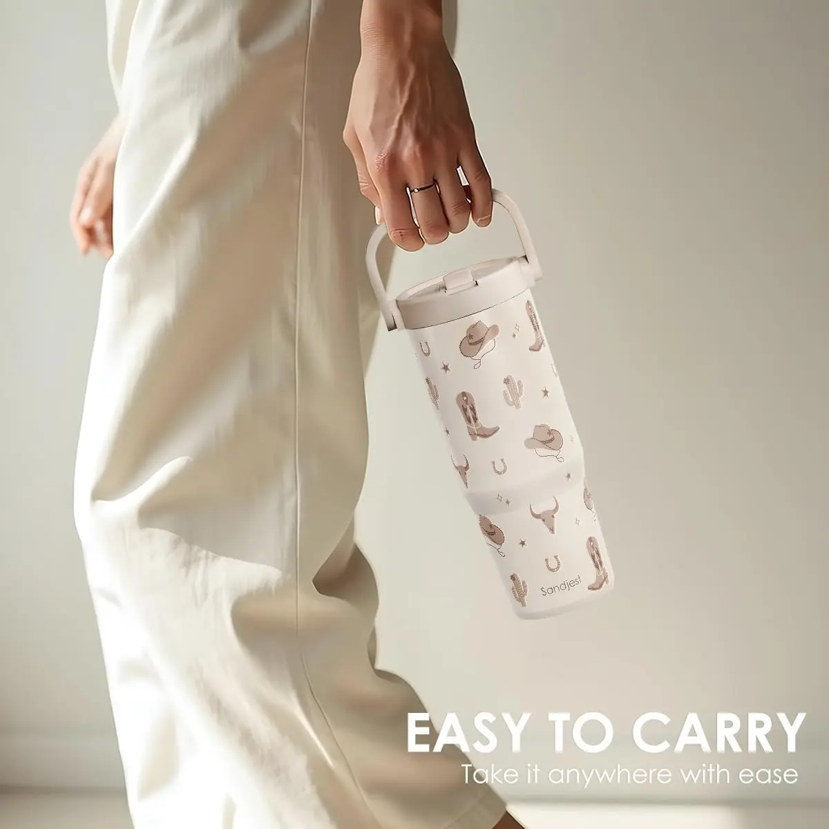 ·On-The-Go Convenience: The Sandjest 30oz flip straw tumbler with carry handle makes hydration effortless at the gym, during travel, outdoor activities, or daily routines.