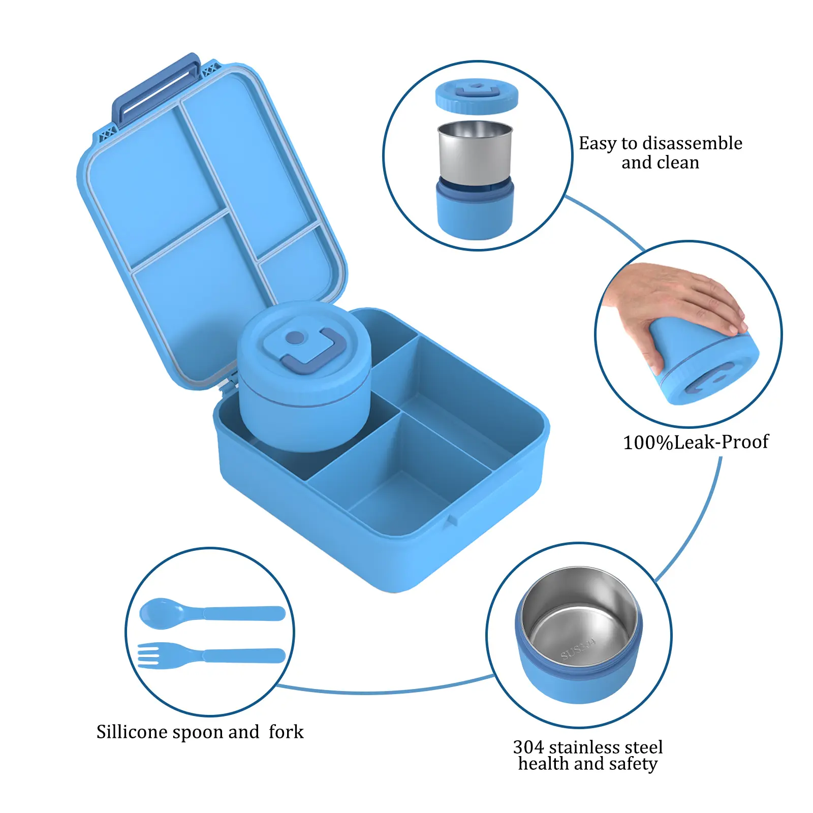 Leak-proof lunch containers designed to prevent spills, making it easy to transport your lunches. The 4 compartments provide ample space for your favorite meals, ensuring you have enough room for all your snacks. Kids will love this thermo hot food jar for storing hot food items.