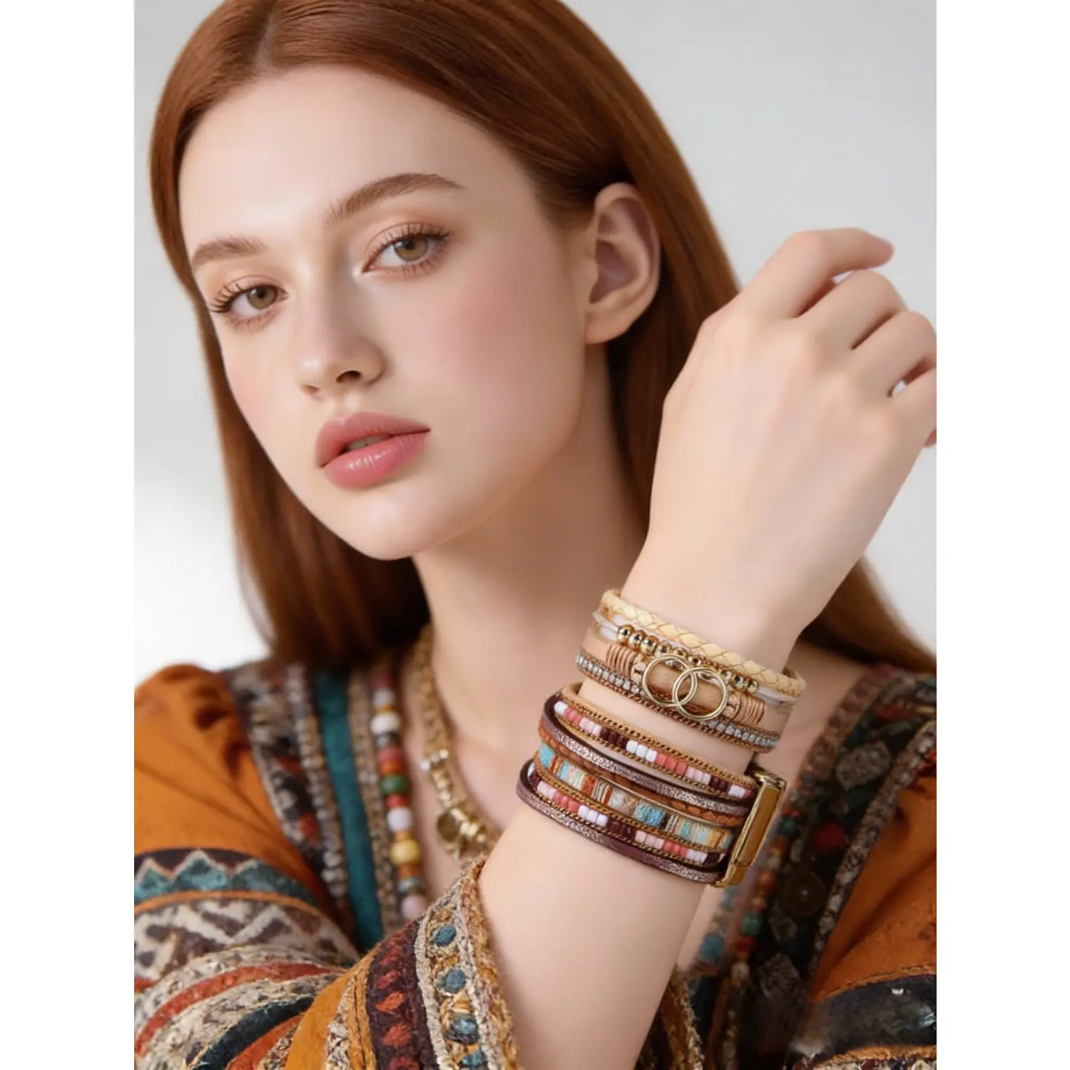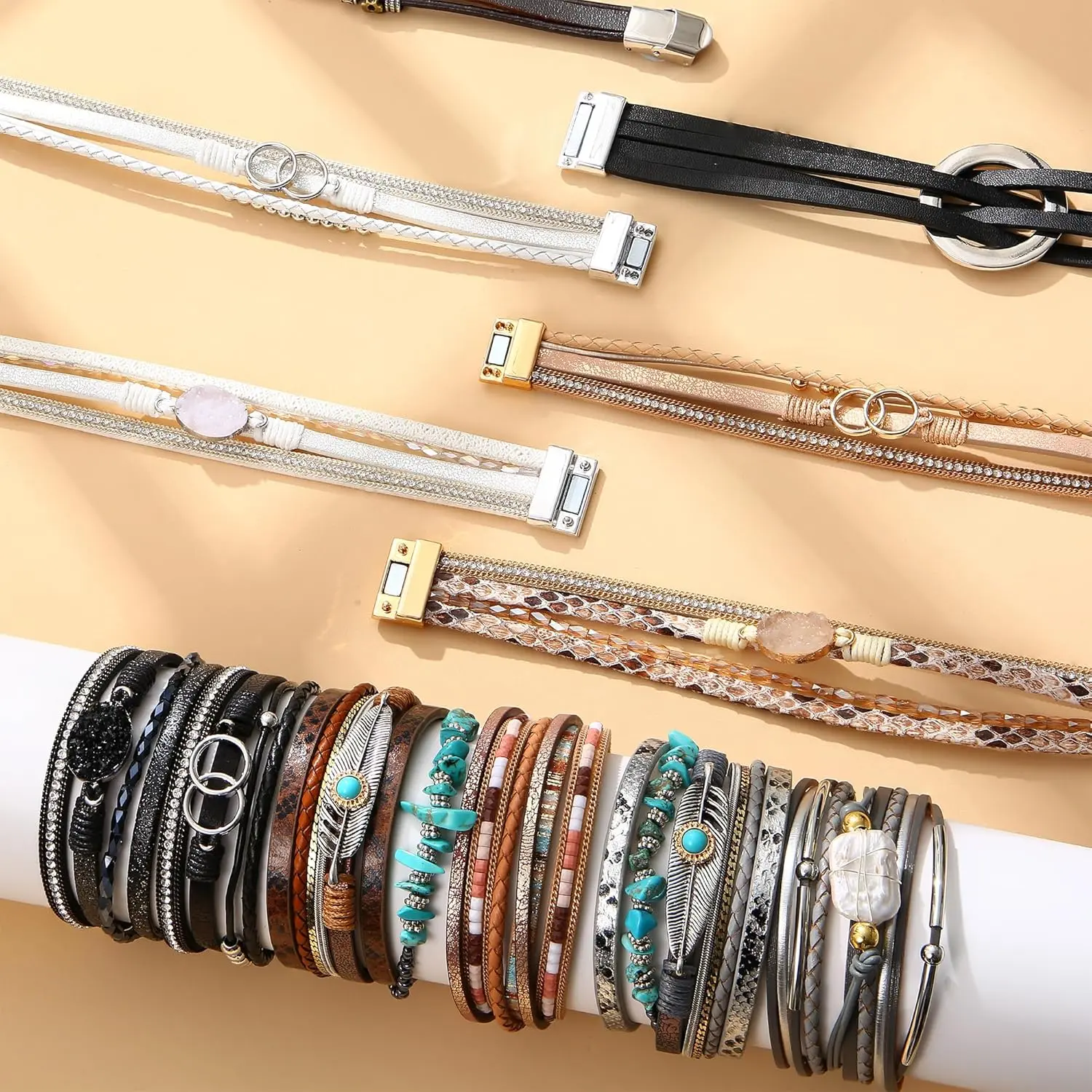 Sanfenly offers a range of boho wrap bracelets, perfect for women. Choose from Silver Gray, Black Bead, Turquoise Boho, Colorful, or Gold sets. Each set showcases exquisite craftsmanship and meticulous design. These bracelets are not just accessories but a statement piece for your wardrobe. Experience the best customer experience with affordable fashion jewelry.