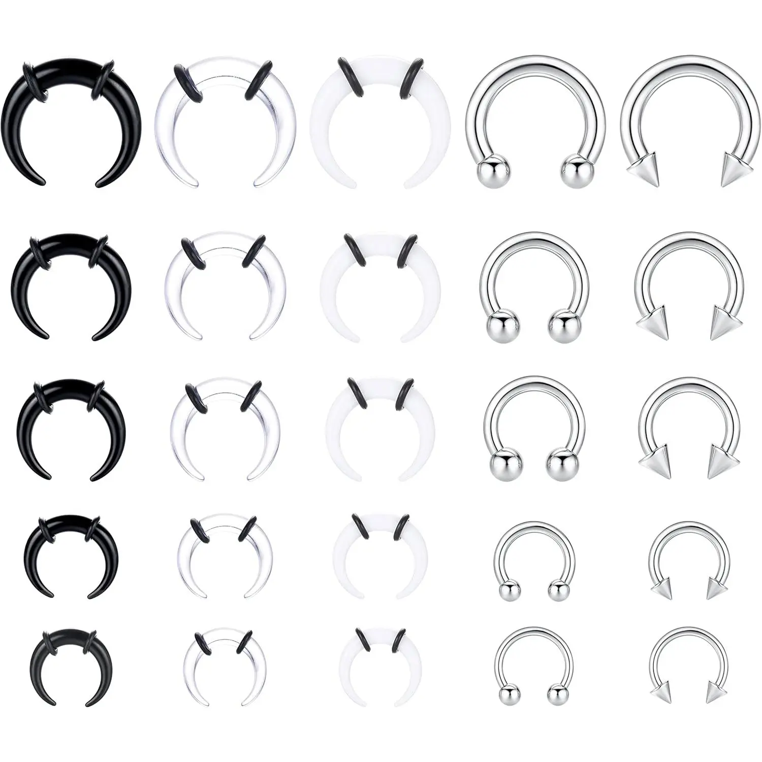 Crafted from hypoallergenic 316L stainless steel and durable acrylic, this septum stretching kit ensures comfort and safety, ideal for sensitive skin and long-term wear