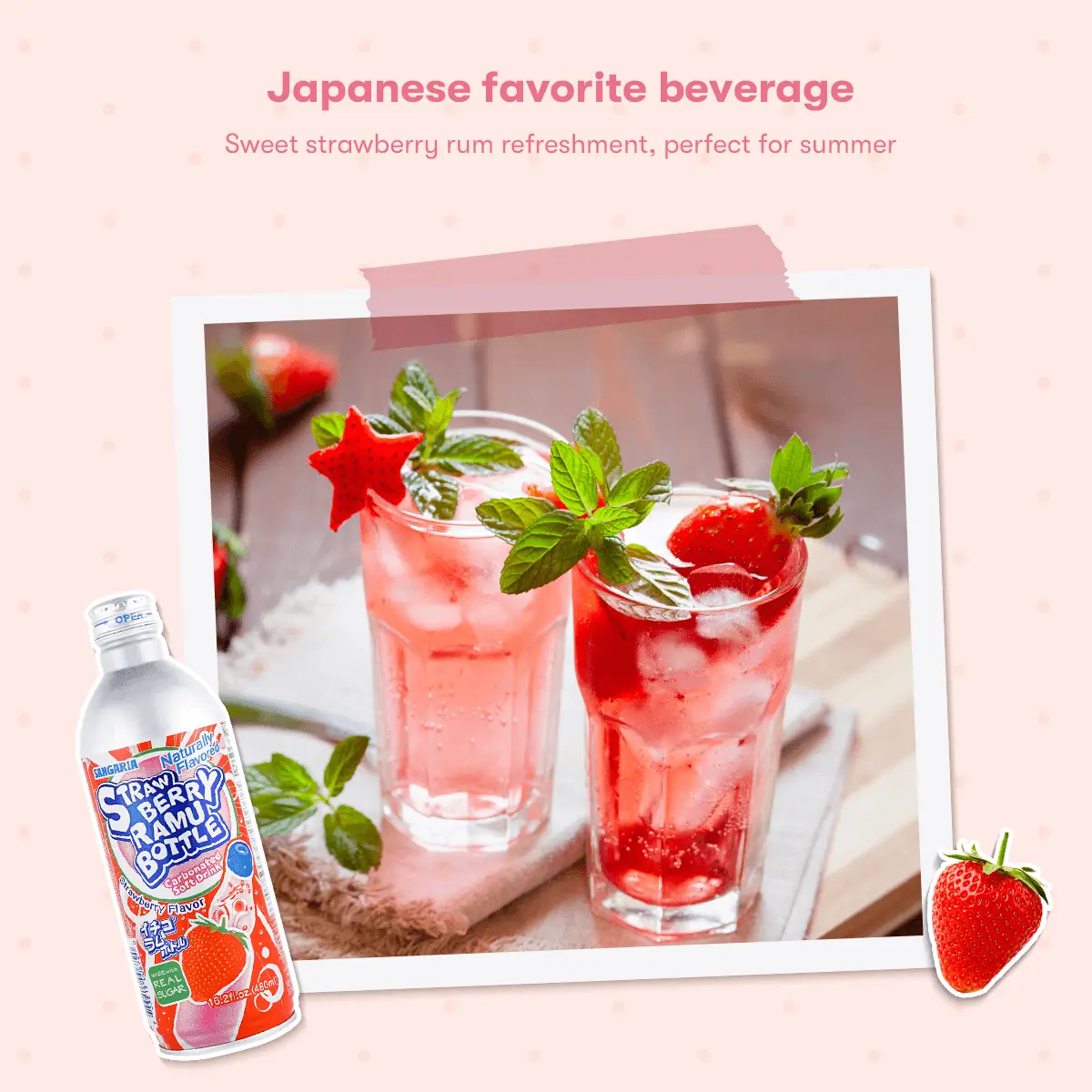 ·The refreshing strawberry flavor blends with dense bubbles.