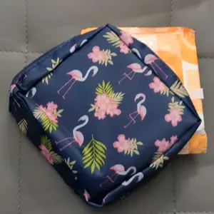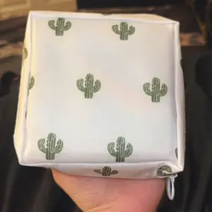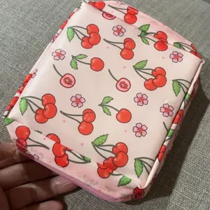 Literally SO cute and such a good material! I was actually so impressed with this! It’s thin almost like mesh material but holds a good amount. I was able to hold one XL pad, 3 ultra thin pads, and several tampons in there no problem!:’)