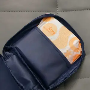 Capacity: Can hold four pads and four tampons or five pads and five tampons