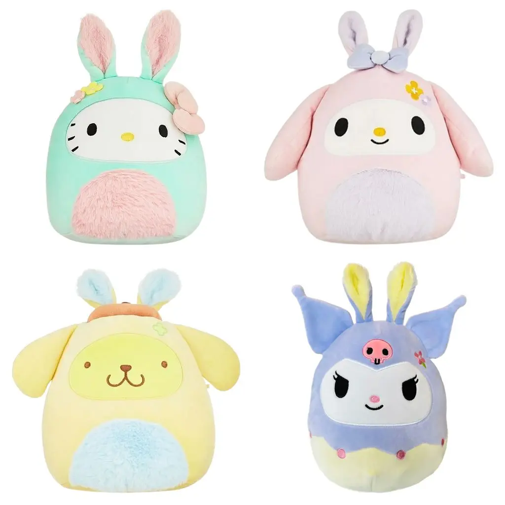 Feel the snuggly, cozy spring weather with the Squishmallows Sanrio Easter 8" Pompompurin Easter Bunny Plush Toy! This ultra-collectible, ultra-squeezable Sanrio plush is made with soft, high-quality materials. Add this detailed and classic Pompompurin plush wearing an adorable bunny outfit, complete with ears, to your Squishmallow Squad.