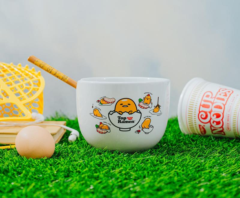 Sanrio Gudetama x Nissin Top Ramen Yolk Poses 20-Ounce Ramen Bowl With Chopsticks