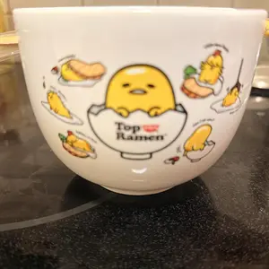 5. Sanrio Gudetama x Nissin Top Ramen Yolk Poses 20-Ounce Ramen Bowl With Chopsticks