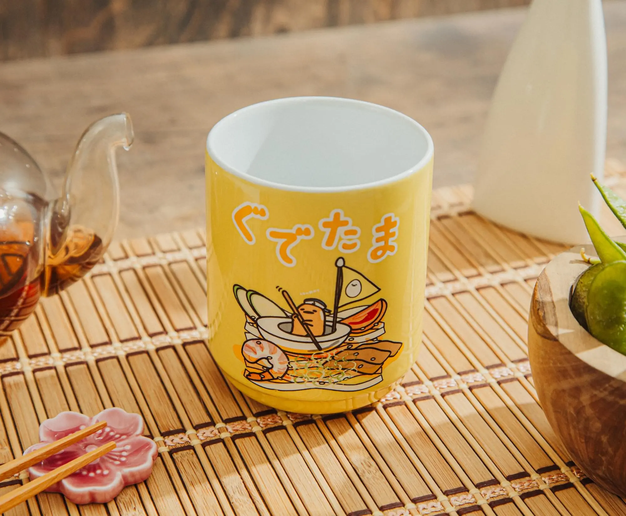 5. Sanrio Gudetama Sailing On Ramen Asian Ceramic Tea Cup | Holds 9 Ounces