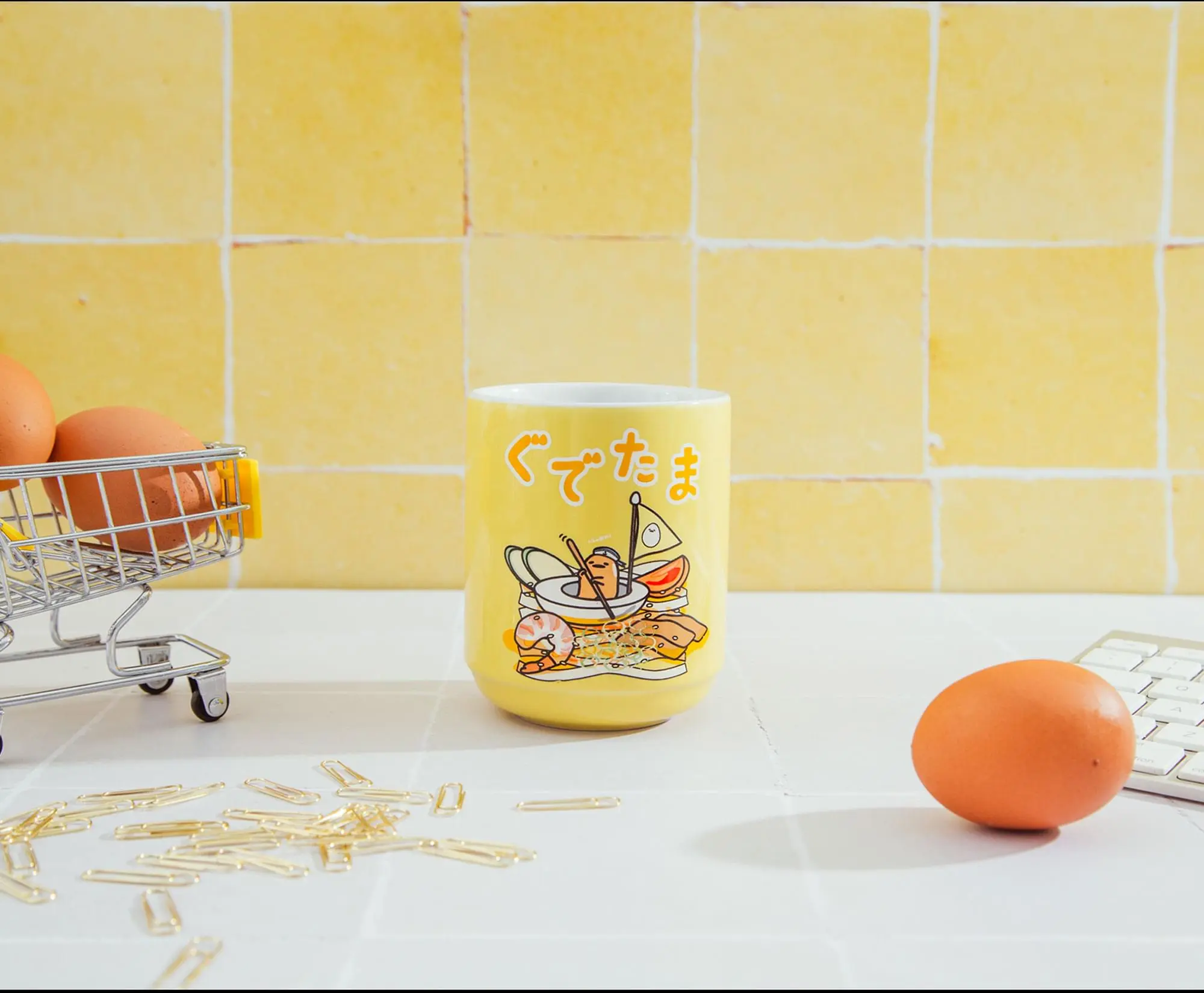 Enjoy your favorite beverage in style with this fun Sanrio Gudetama-themed tea cup! Fun and functional, this tea cup is great for using around the house, at the office, parties, and more! Officially licensed. Produced by Silver Buffalo, a trendsetting housewares and home decor company based in the heart of New York City. A Toynk exclusive!