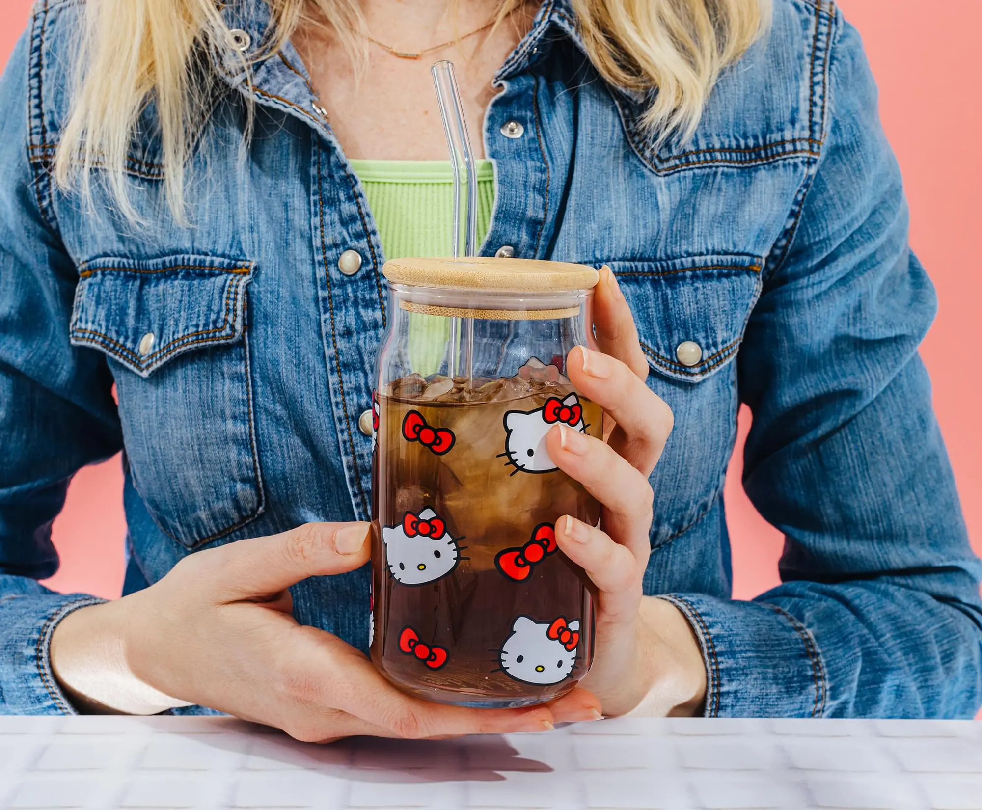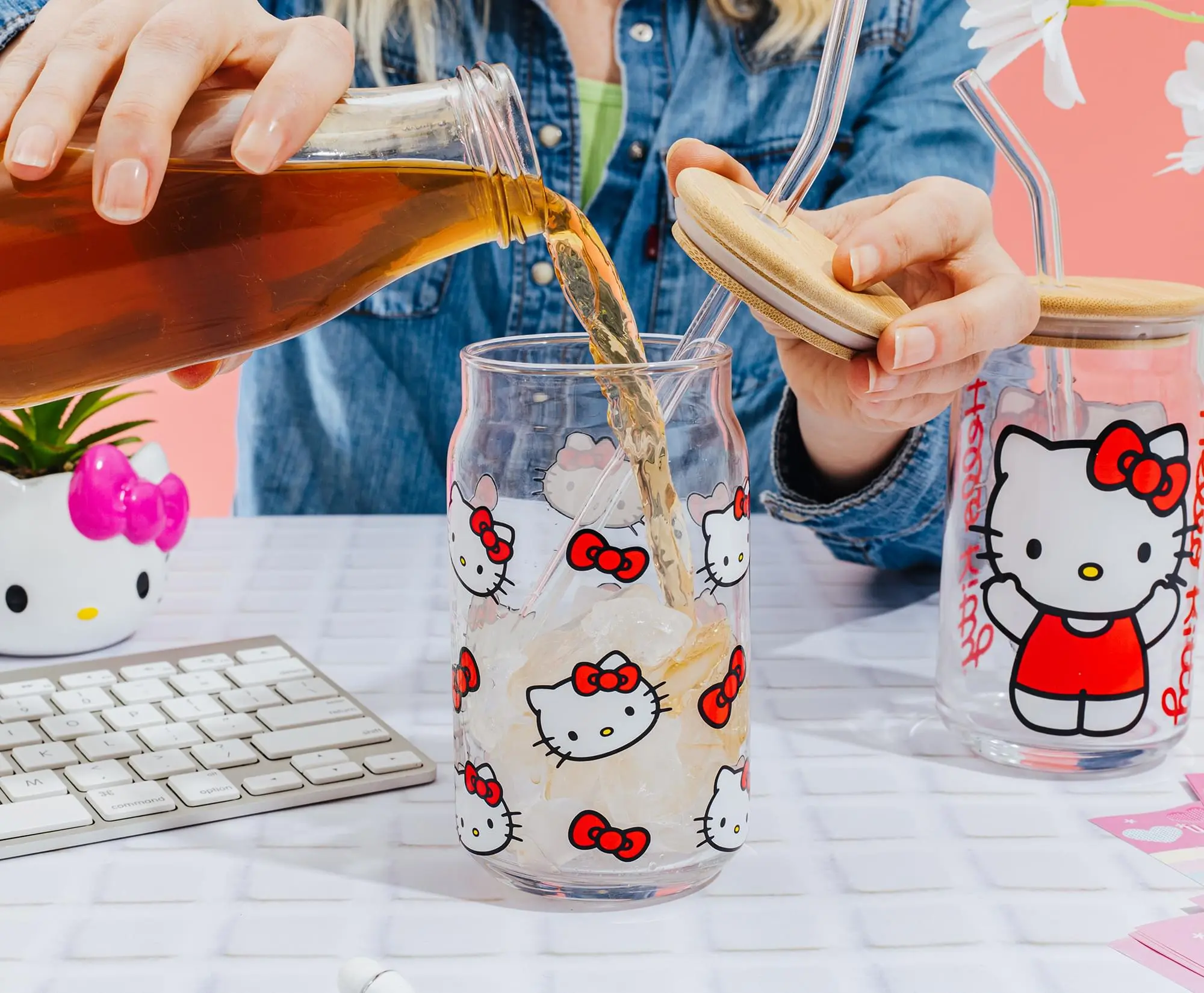 5. Sanrio Hello Kitty 16-Ounce Glass Tumblers With Bamboo Lid and Straw | Set of 2