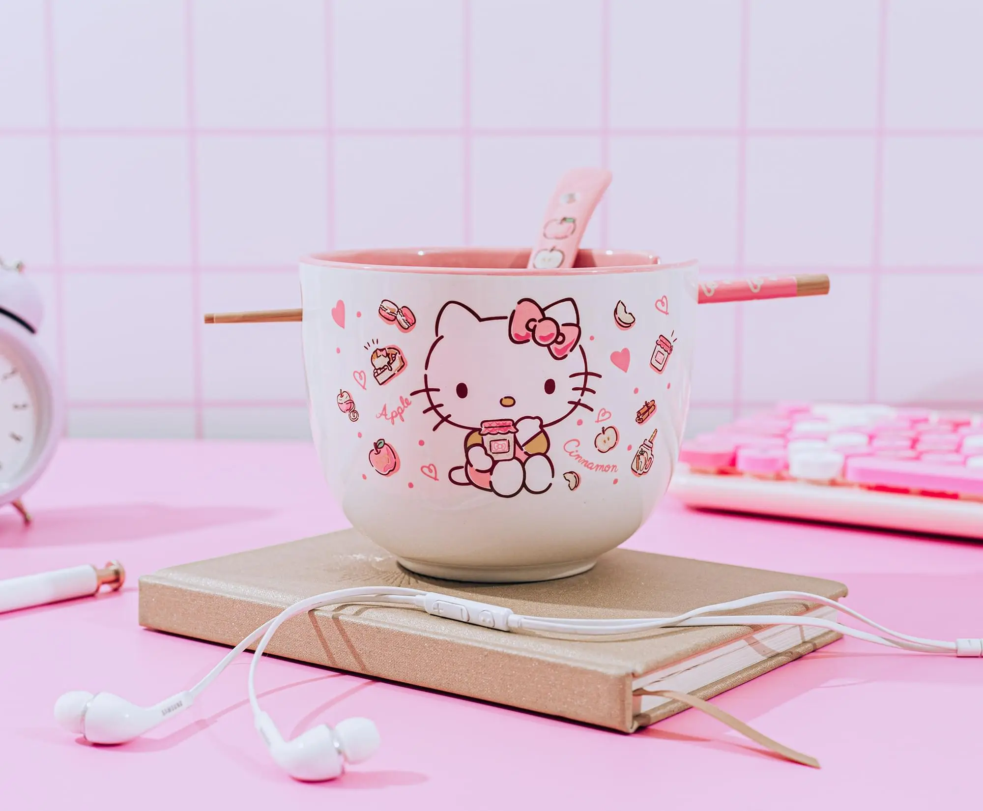 5. Sanrio Hello Kitty Apples and Cinnamon 20-Ounce Ramen Bowl and Chopstick Set