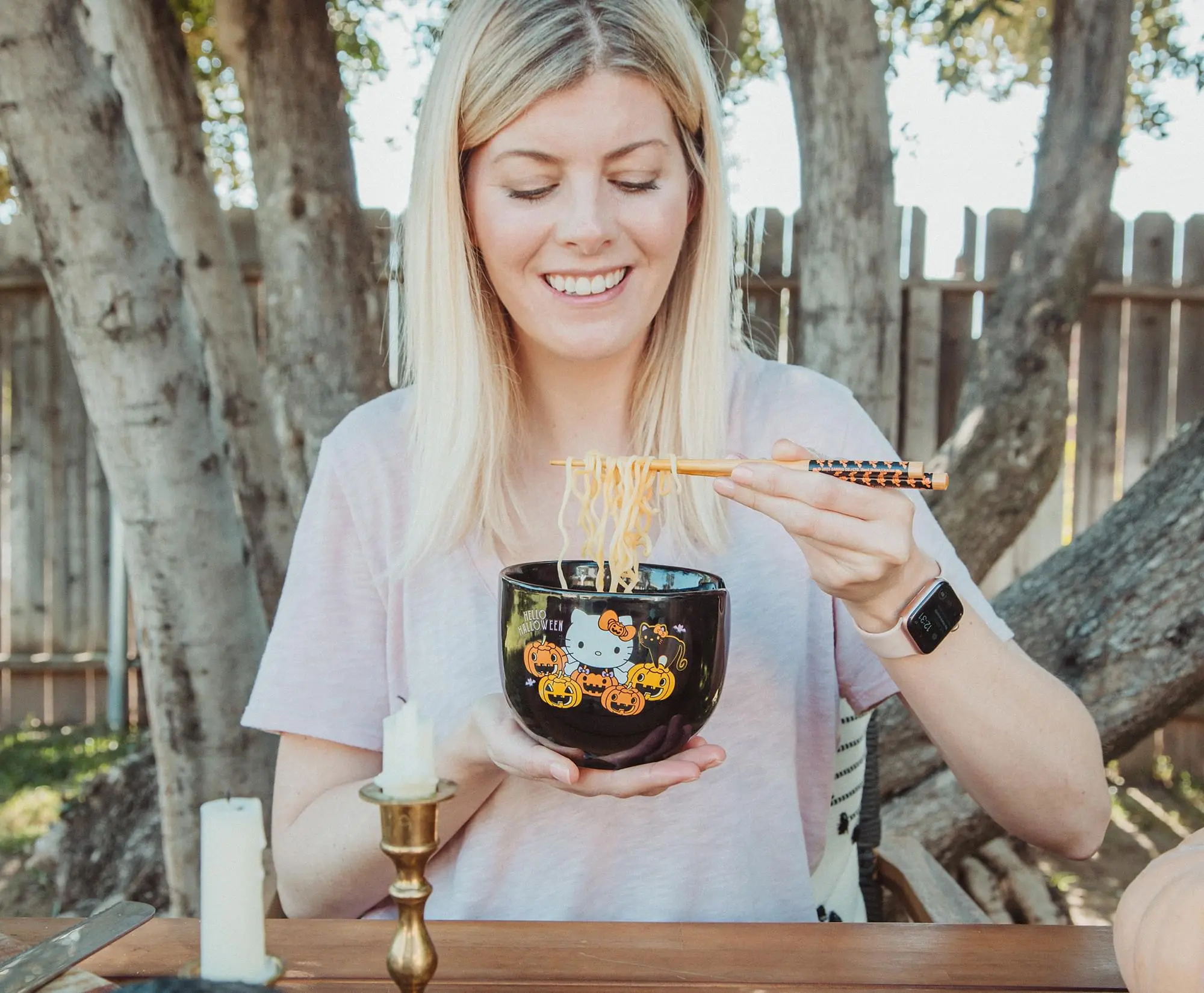 5. Sanrio Hello Kitty Pumpkins 20-Ounce Ramen Bowl and Chopstick Set
