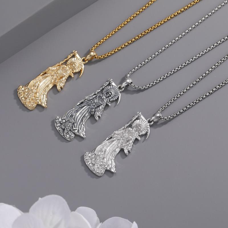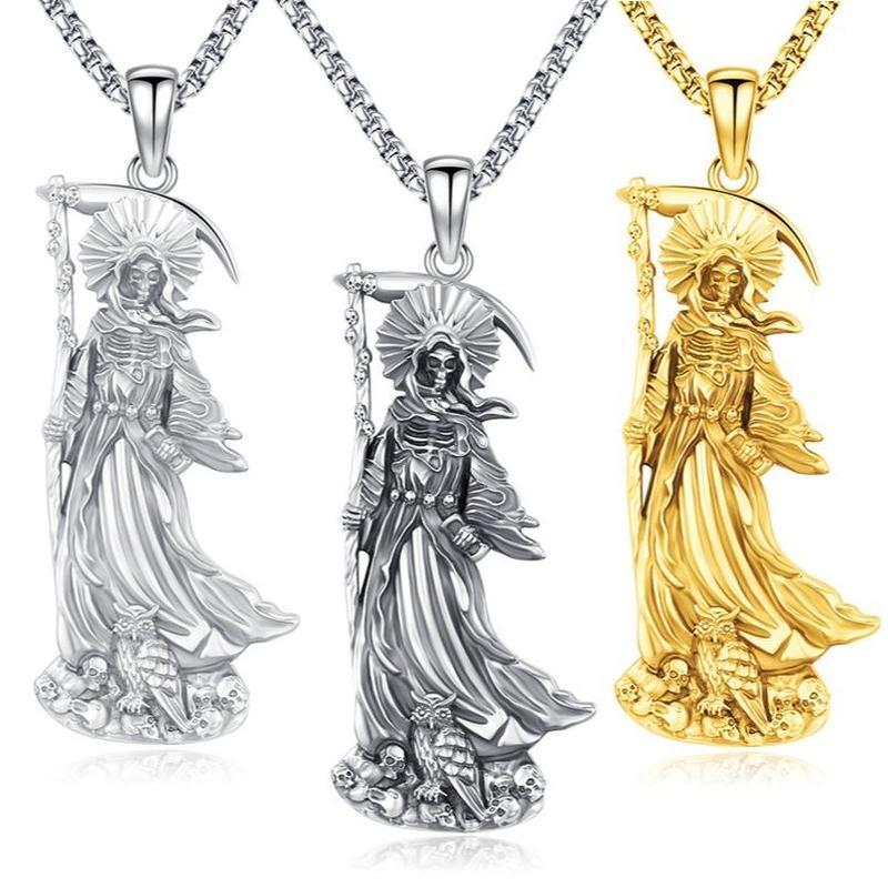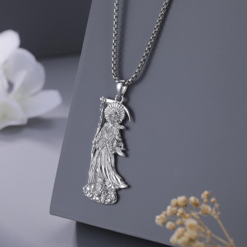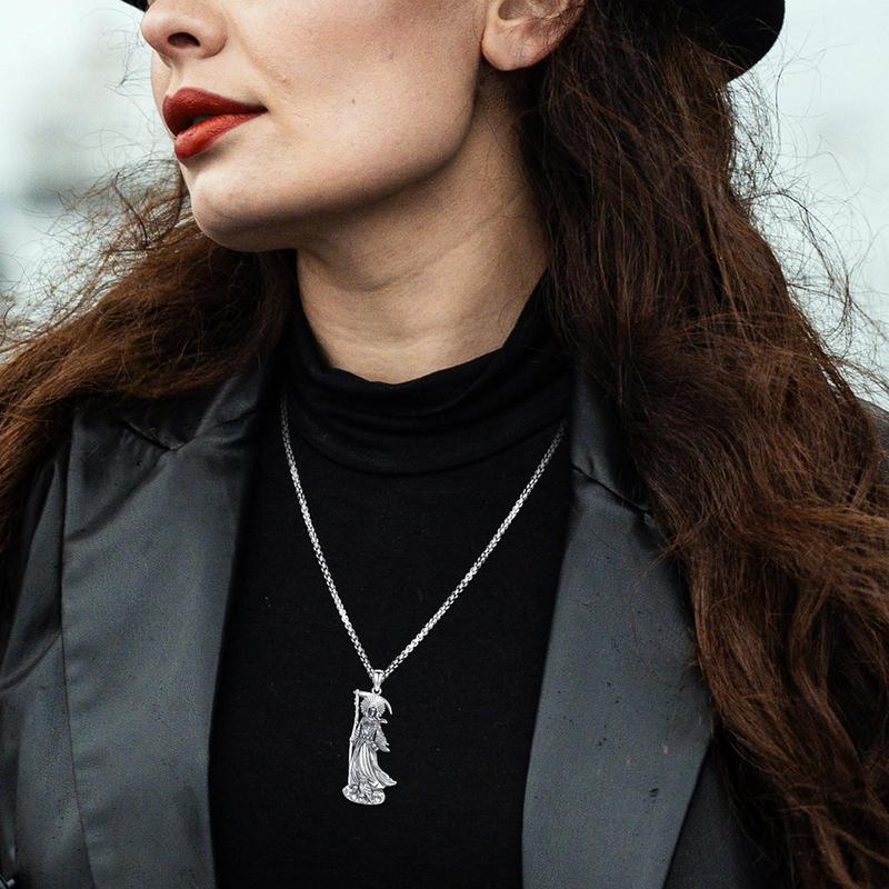 DRINSPER Santa Muerte Necklace 925 Sterling Silver Penant Necklace, Grim Reaper, Death Personified, Mythology Jewelry Necklace Gift for Men WomenDRINSPER Santa Muerte Necklace 925 Sterling Silver Penant Necklace, Grim Reaper, Death Personified, Mythology Jewelry Necklace Gift for Men WomenDRINSPER Santa Muerte Necklace 925 Sterling Silver Penant Necklace, Grim Reaper, Death Personified, Mythology Jewelry Necklace Gift for Men Women