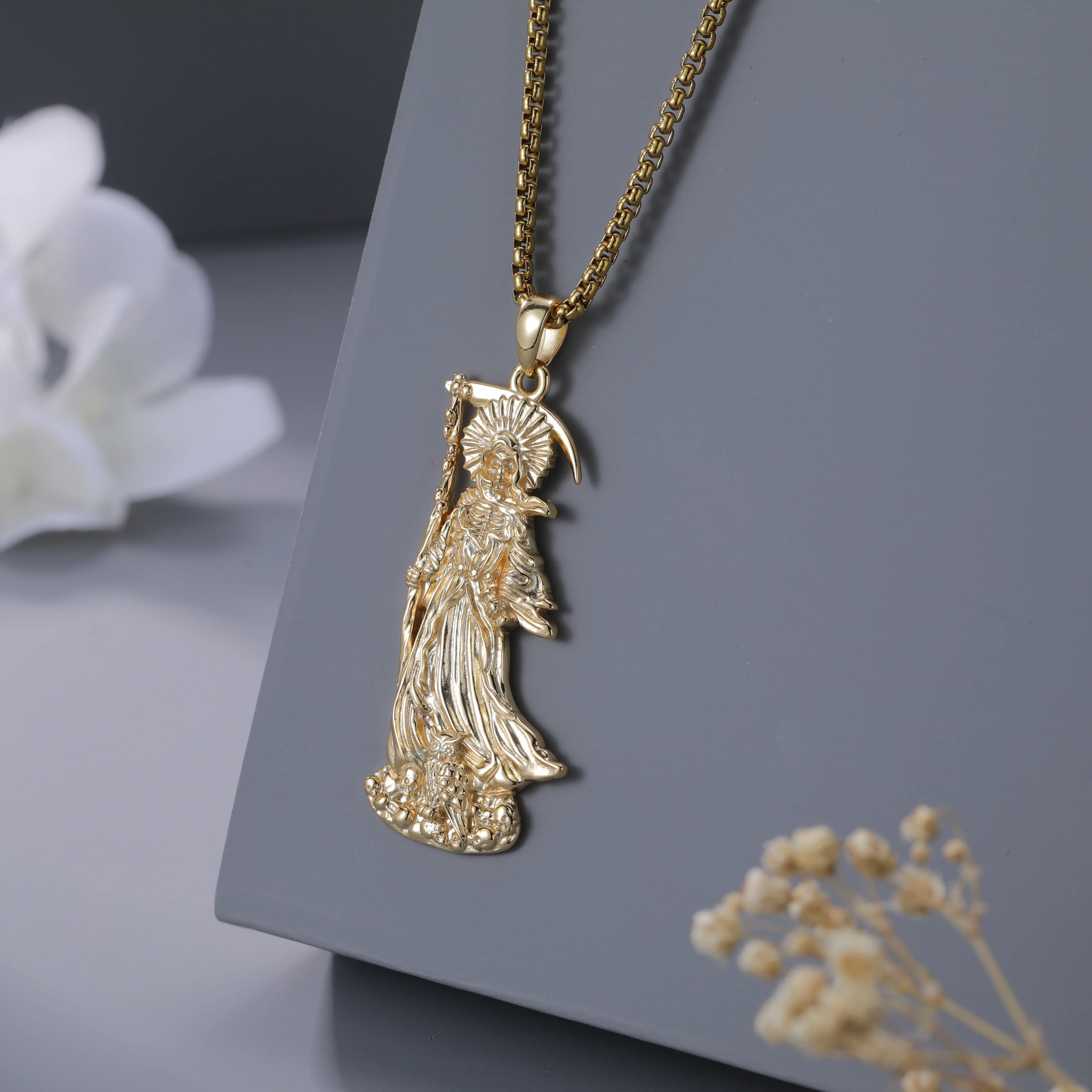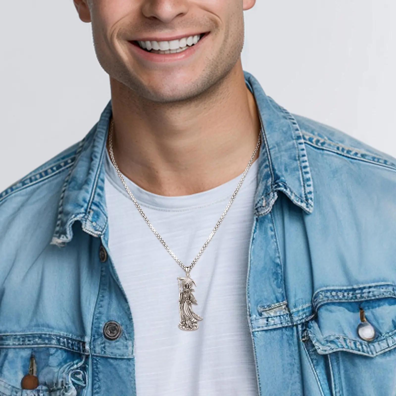 This is a full of strength santa muerte medal, suitables for men or women as a gift. Perfect for Thanksgiving, Christmas, Anniversary, birthdays, etc. for those we love. This la santa muerte necklace is a timeless addition to enhance your everyday style. With its beautiful design, it can also be worn as a symbol of love for couples.