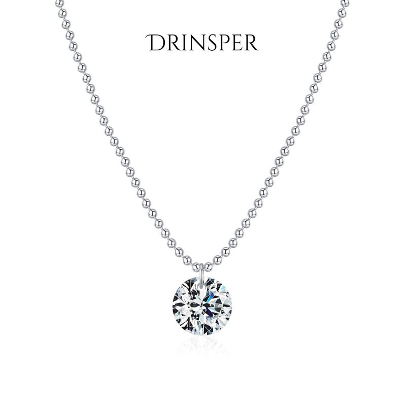 5. Drinsper S925 2.00CT Synthetic Moissanite Beaded Pendant Necklace for Women Girls Sterling Silver Minimalist Style Choker Suitable for Daily Wearing Birthday Chrismas Gift for Girlfriend Mom