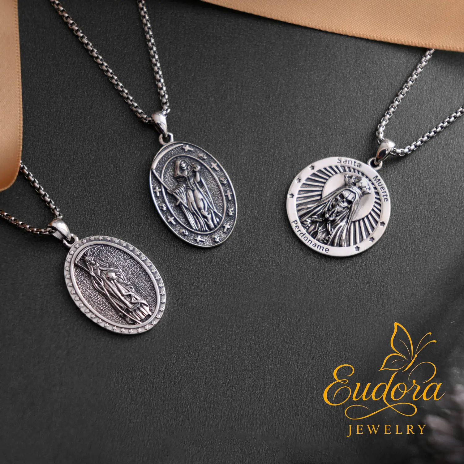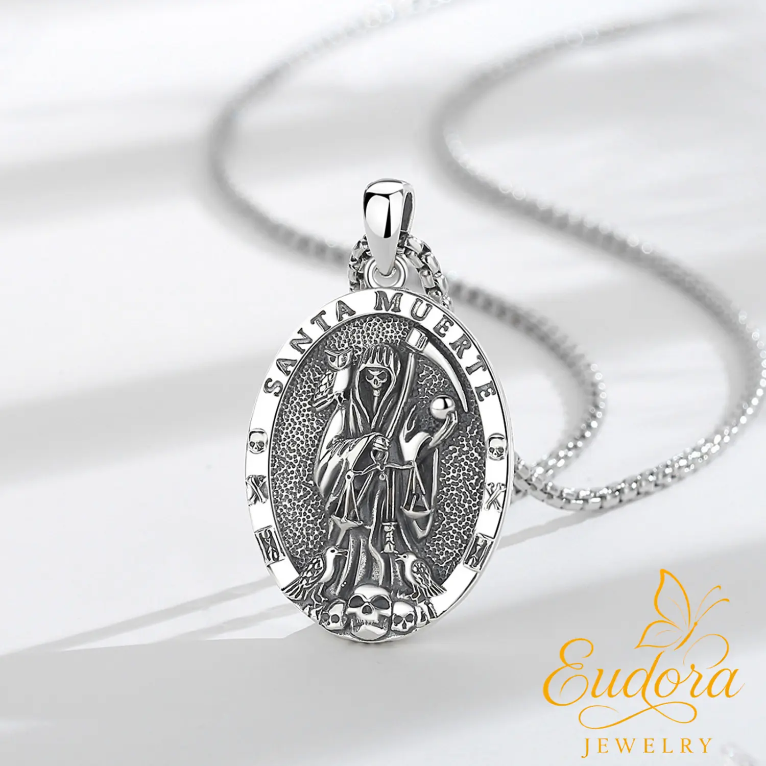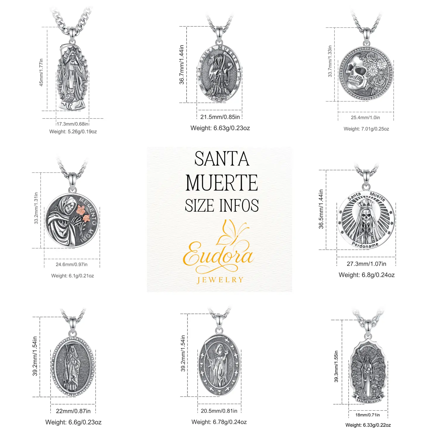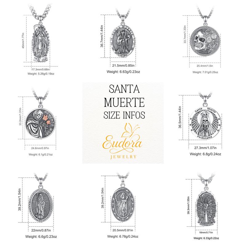 ·Oval Santa Muerte Medal: Approx. 36.7mm x 21.5mm (1.44" x 0.85"); 6.63g.