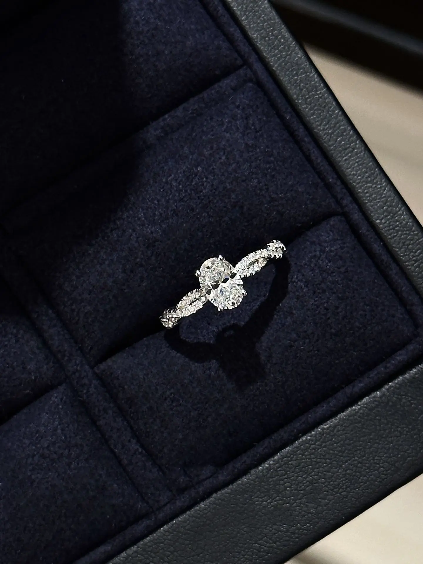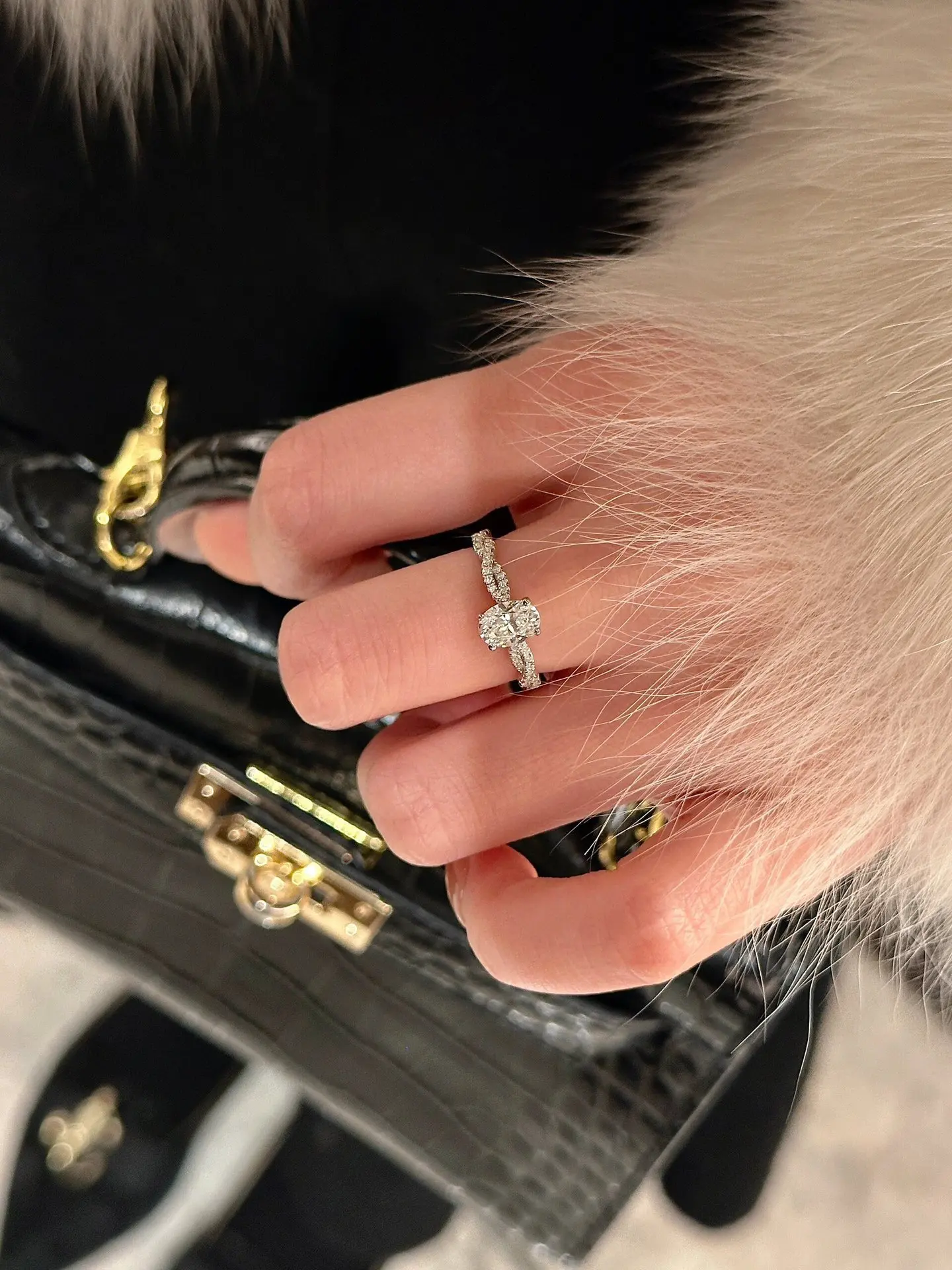 DRINSPER Twisted Oval S925 1.0ct Dvvs Synthetic Moissanite Sterling Silver Ring for Women Girls Suitable for Engagement Chrismas Gift for Girlfriend Jewelry Accessory