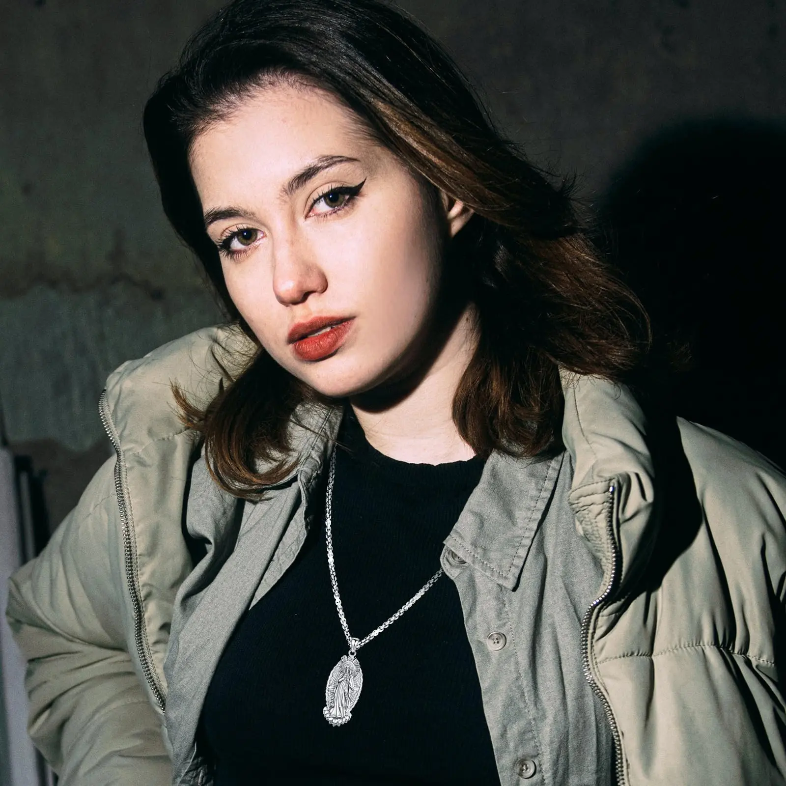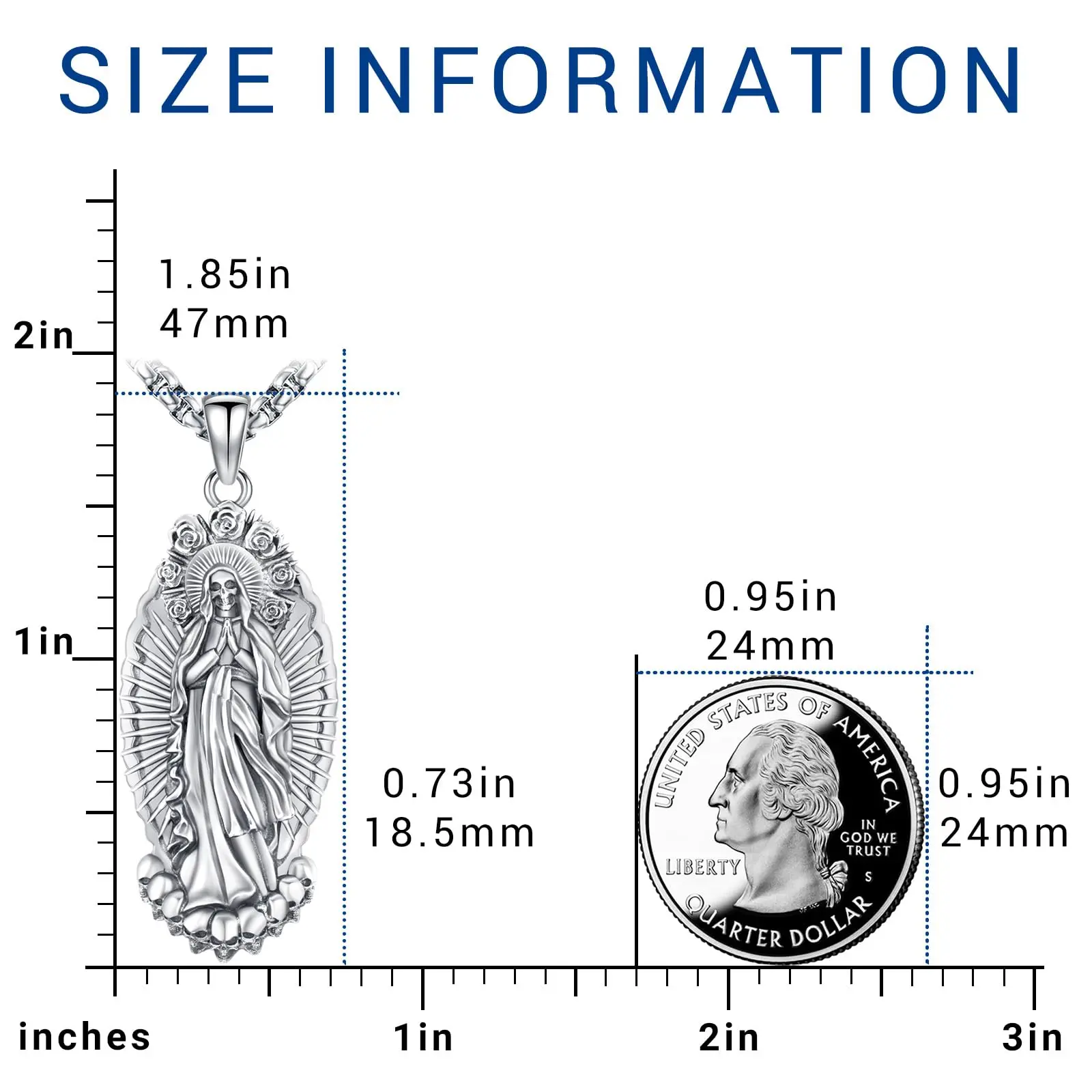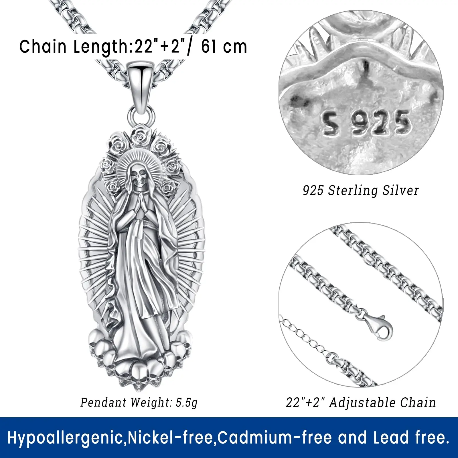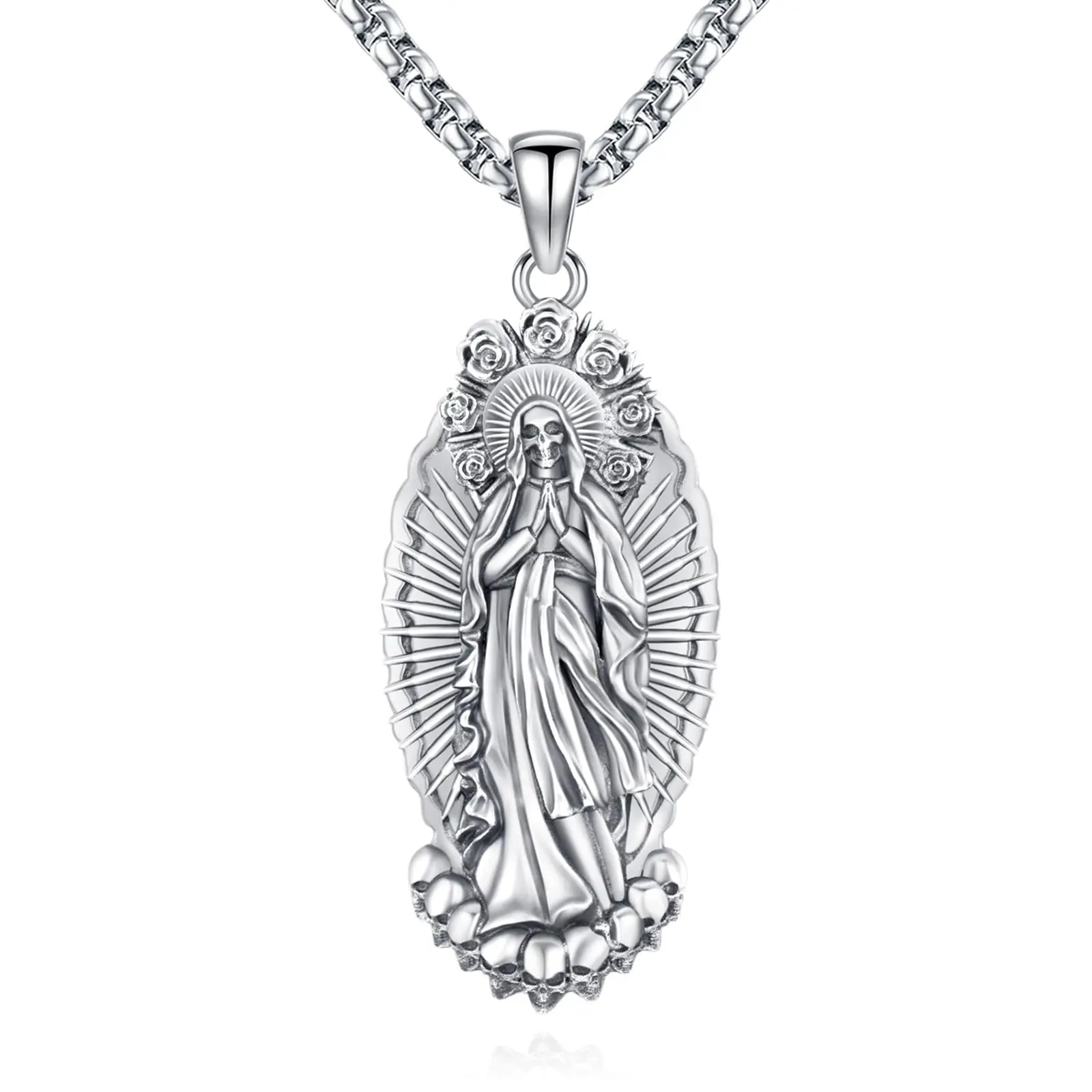 Dive into gothic spirituality with Sebina 925 Silver Necklace! Features an intricately carved Santa Muerte pendant, surrounded by roses and skulls, crafted in 925 sterling silver. Perfect for those into unique religious - gothic styles, adding an edgy, meaningful touch to looks.