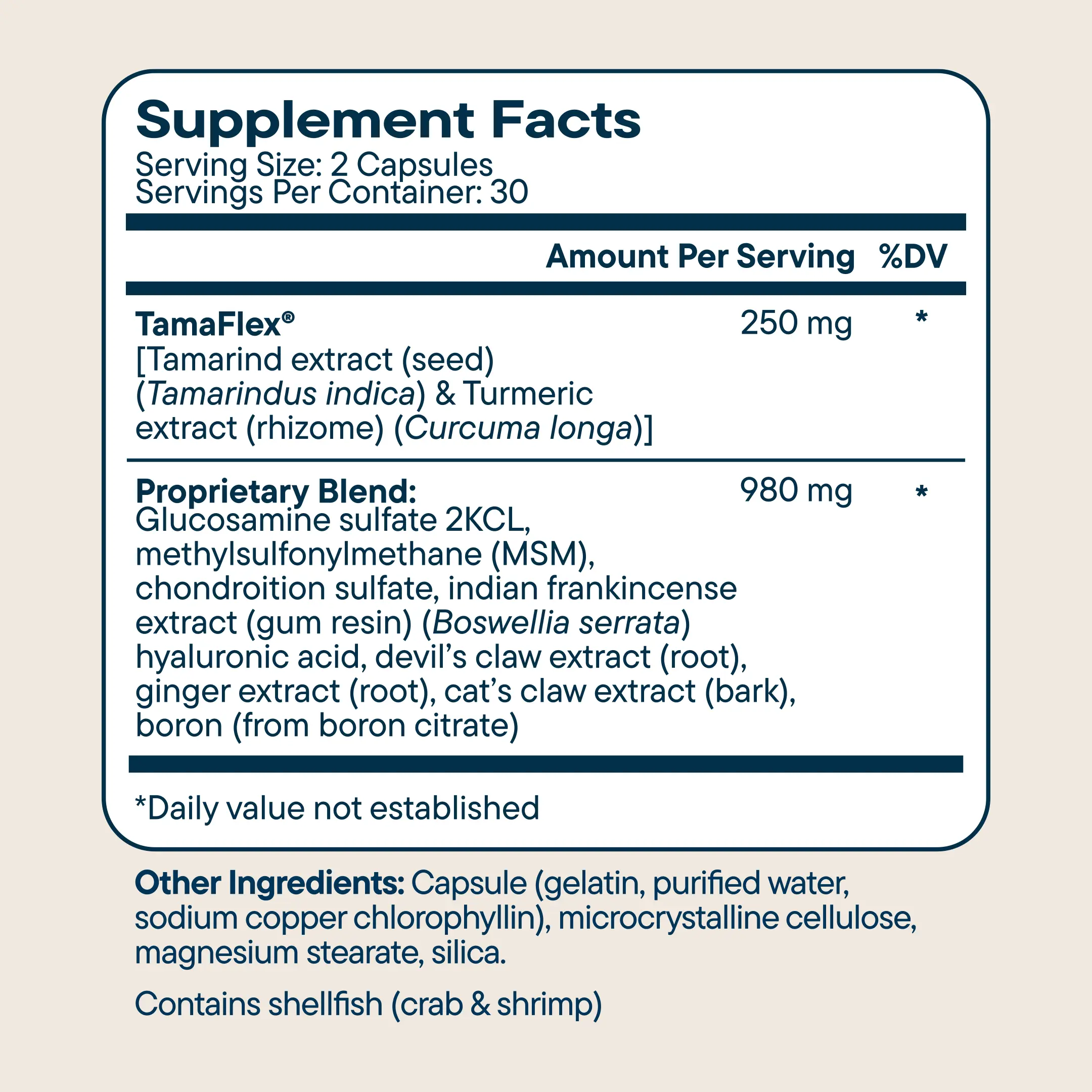 It contains TamaFlex®, the first patented formula based on tamarind seed extract and turmeric root, which has been shown to provide fast-acting and long-lasting joint relief in as little as 5 days.
