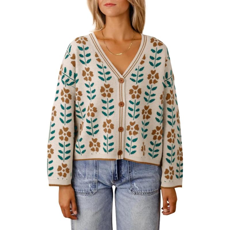 Saodimallsu Womens Floral Print V Neck Cardigan Open Front Button Down Knit Sweater Long Sleeve Loose Fashion TopsSaodimallsu Womens Floral Print V Neck Cardigan Open Front Button Down Knit Sweater Long Sleeve Loose Fashion TopsSaodimallsu Womens Floral Print V Neck Cardigan Open Front Button Down Knit Sweater Long Sleeve Loose Fashion Tops