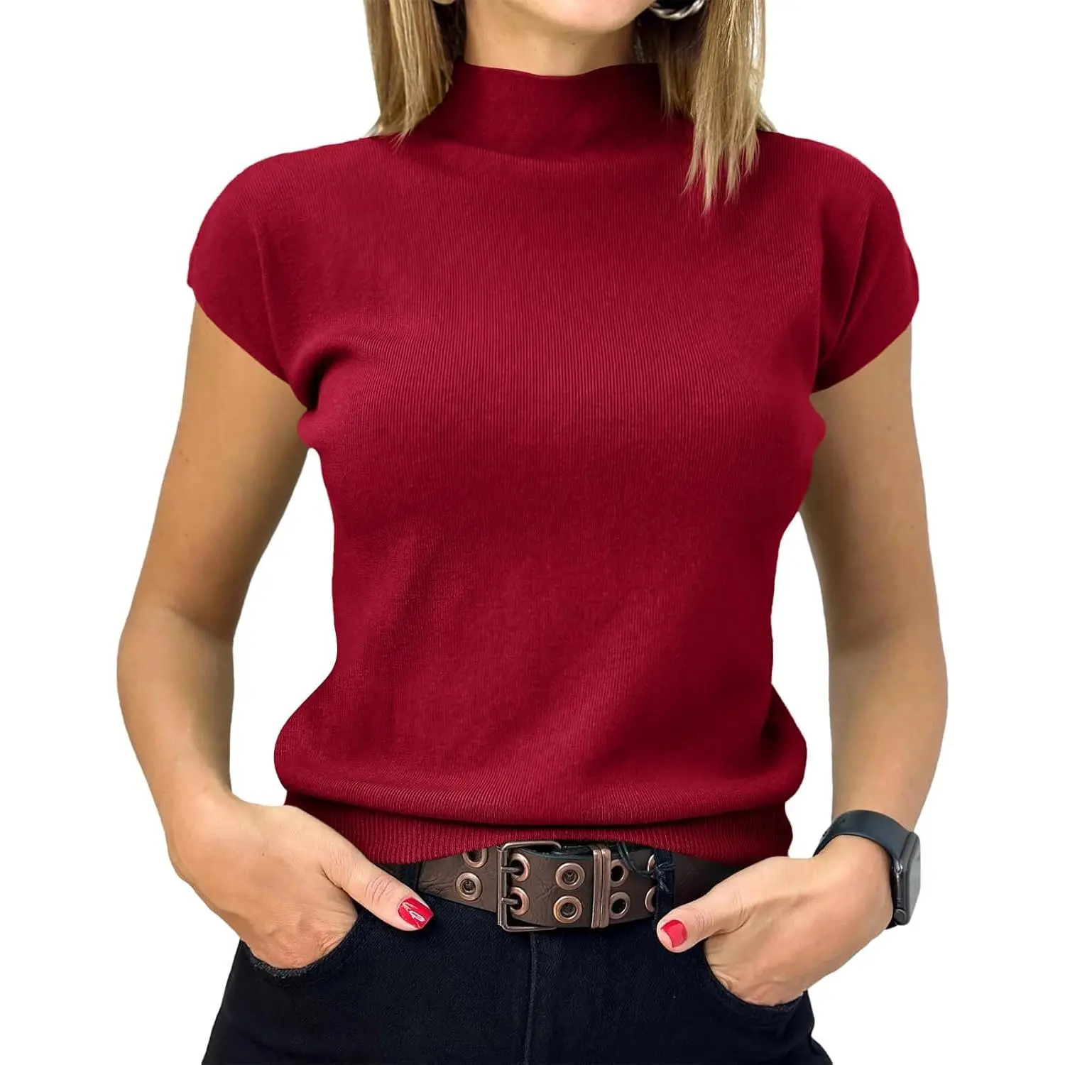 This sweater is perfect for summer tops, knit vests, and swimsuit coverups. The mock neck design with cap sleeves adds a stylish touch. The brand focuses on clothing as a medium for comfort, confidence, and self-expression. For long sleeves, explore the extended sleeve version. Click above to find it.
