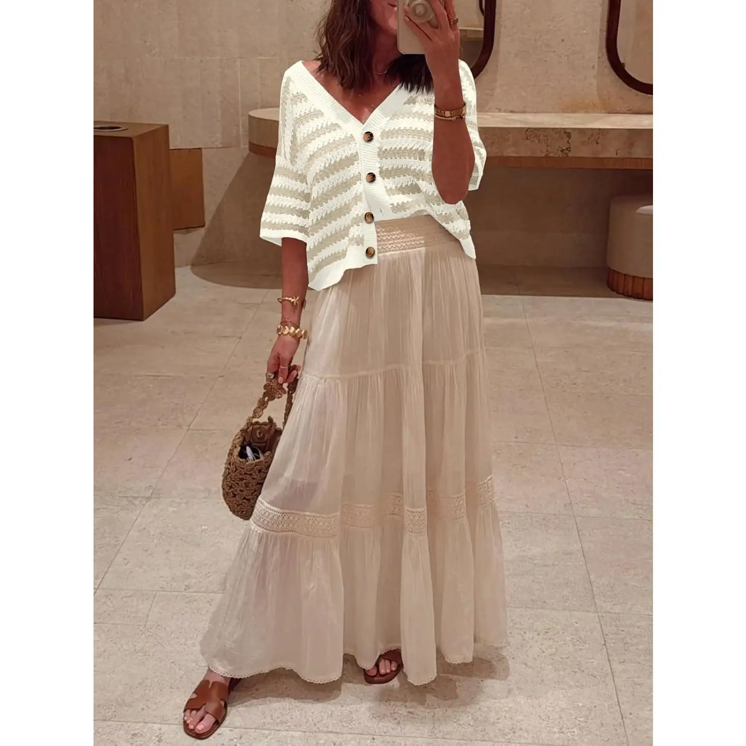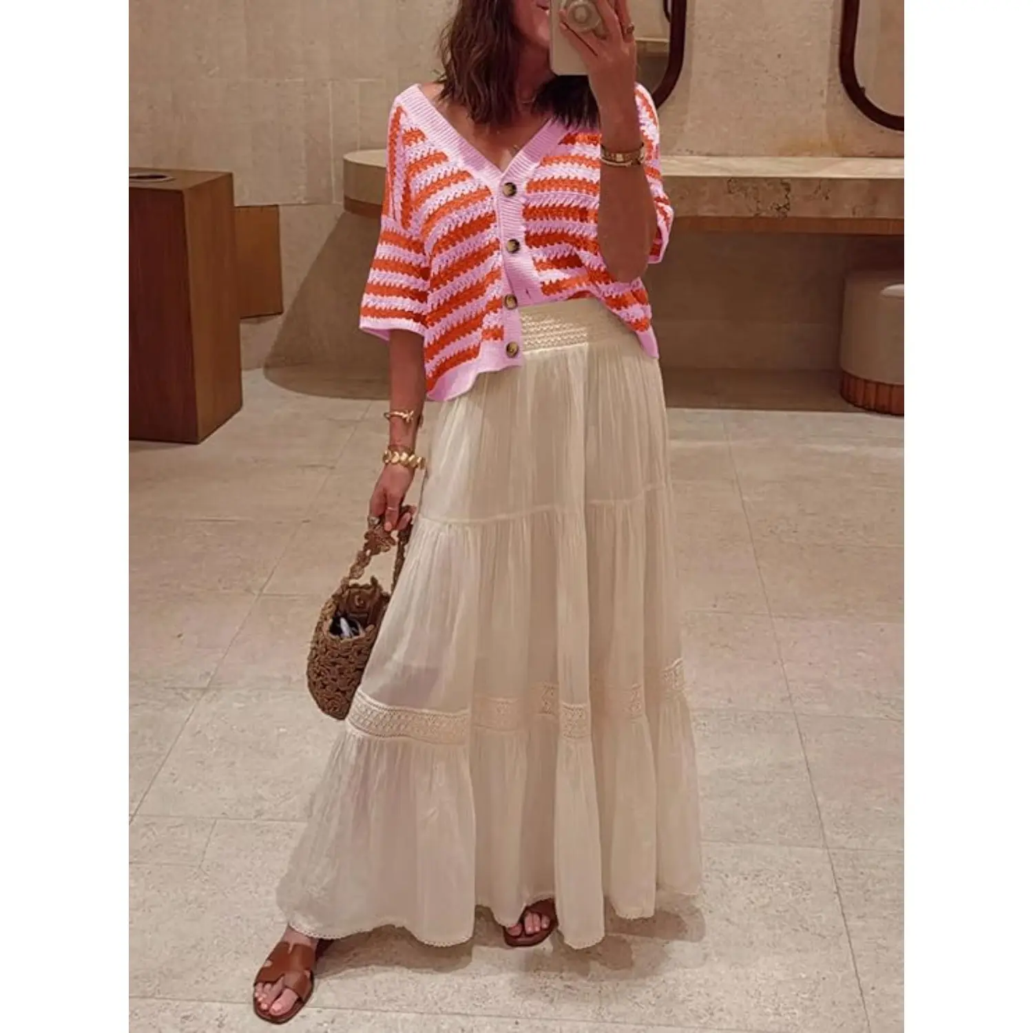 I’m absolutely obsessed with this short sleeve crocheted cardigan! It just looks so classy and it’s so comfortable!  #cardigan #springsweater #crochetcardigan #stripedstyle #tiktokshopcreatorpicks @Saodimallsu global shop