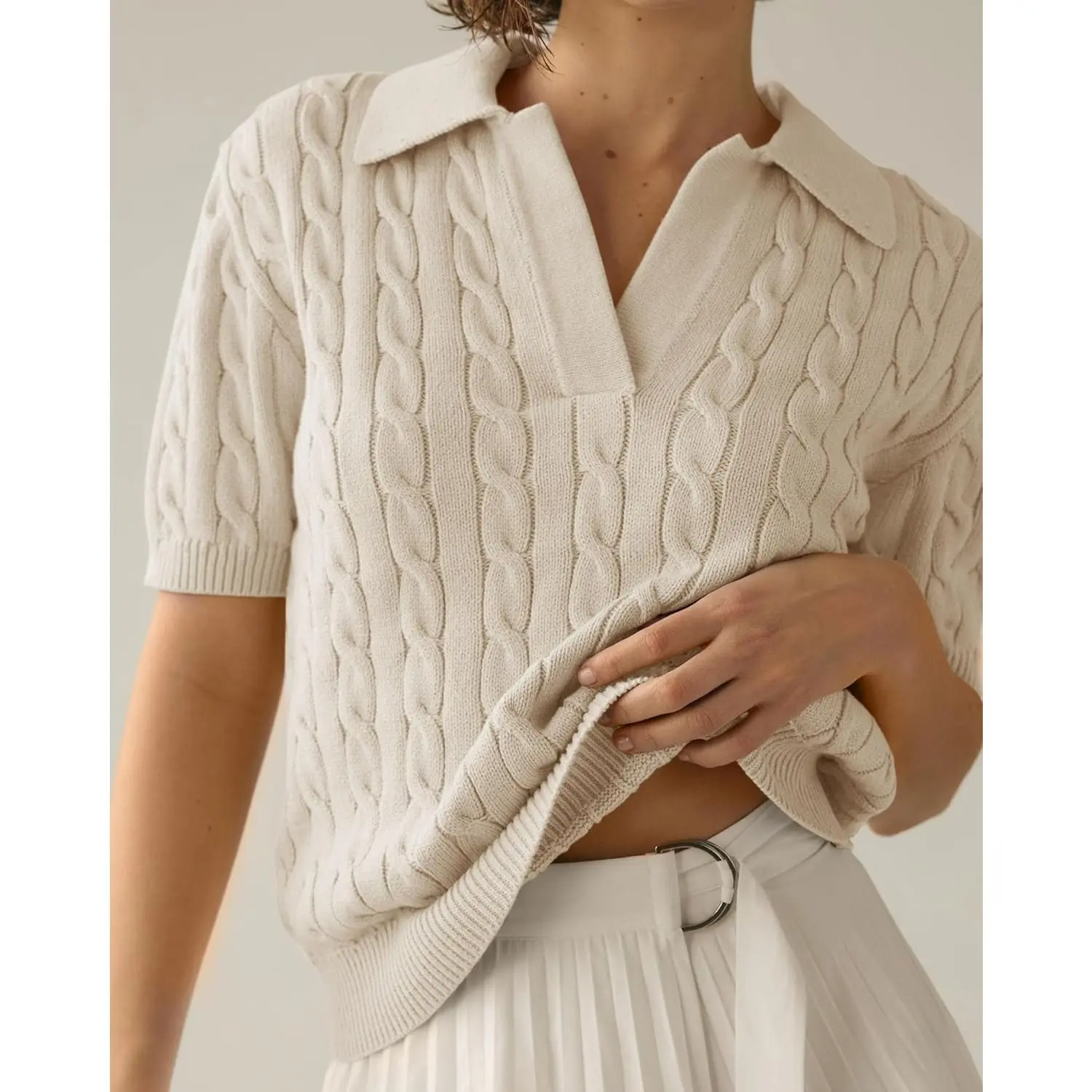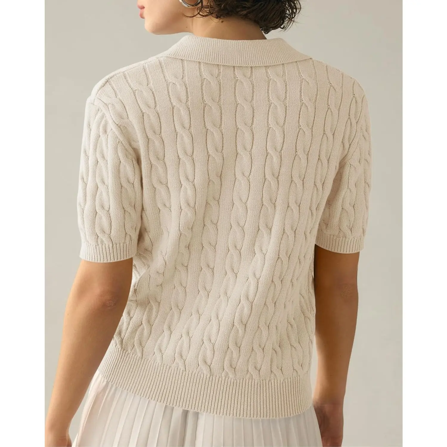 This short sleeved cable knit polo sweater is giving classic , polished , and spring ready . Perfect with jeans, pants, shorts , or skirts. Feels and looks so high end. @Saodimallsu shop #springfashion #capsulewardrobe #tiktokshoprestock #oldmoneyaesthetic #springoutfit