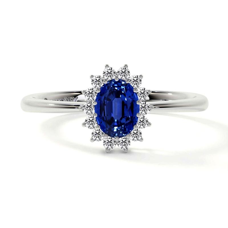 In addition to the sapphire, the set also includes 14 diamonds with a total weight of 0.14cts. These diamonds are carefully selected and set in a way that enhances the overall beauty of the set. The diamonds are a symbol of love and commitment, making this set a perfect choice for a wedding.