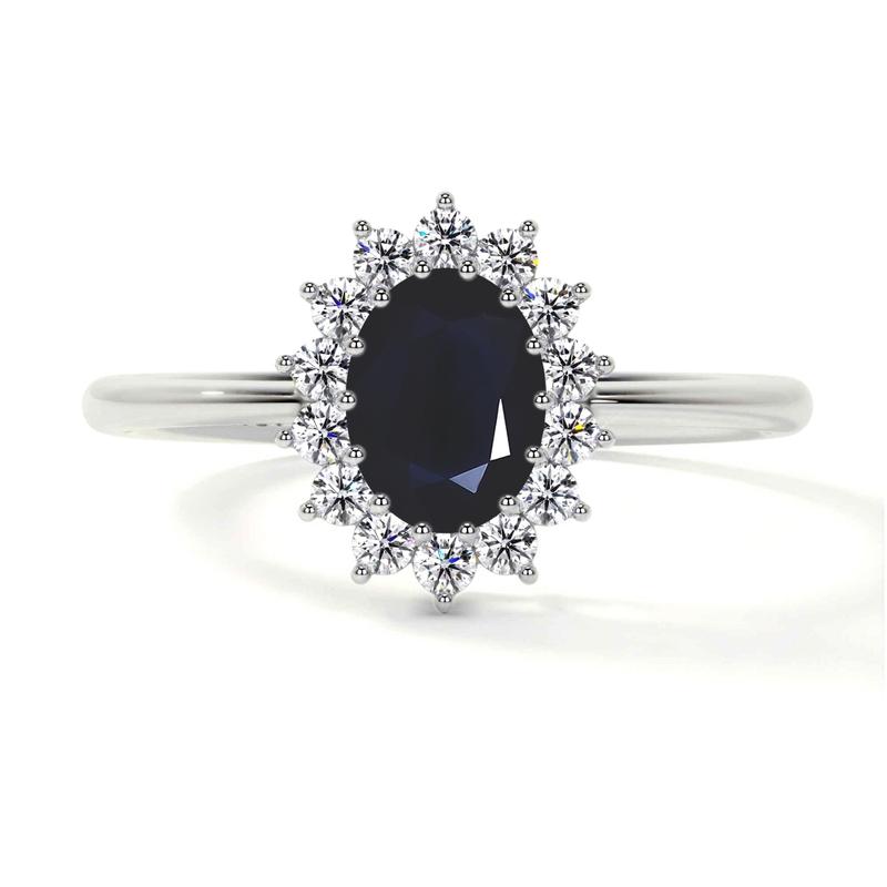 5. Classic Princess Diana Replica Oval Sapphire Halo Ring (1.28cttw)- RBS024-7X5-A