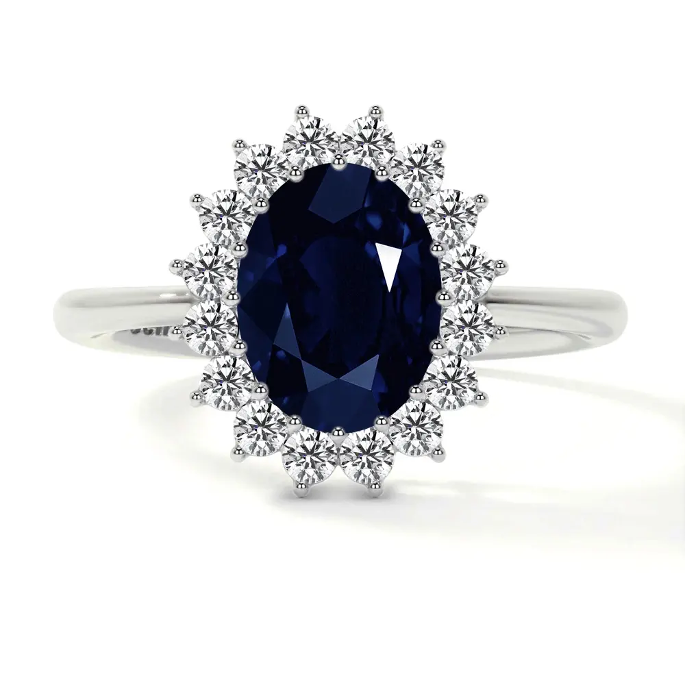 5. Classic Princess Diana Replica Oval Sapphire Halo Ring (2.73cttw)- RBS024-9X7-AA