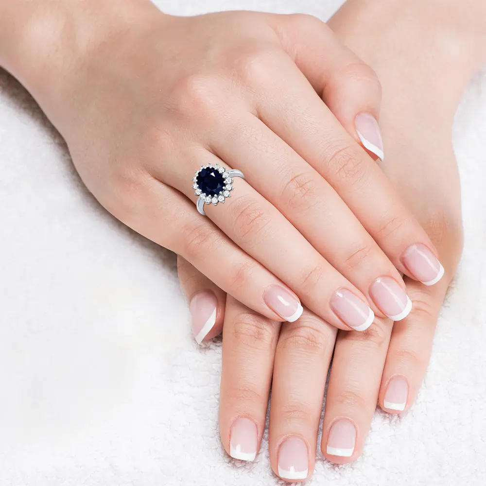 In addition to the sapphire, the set also features 16 diamonds with a total weight of 0.64cts. These diamonds are set in a pave setting, which adds a touch of elegance and sophistication to the set. The diamonds are of good quality and are sure to catch the eye of anyone who sees them.