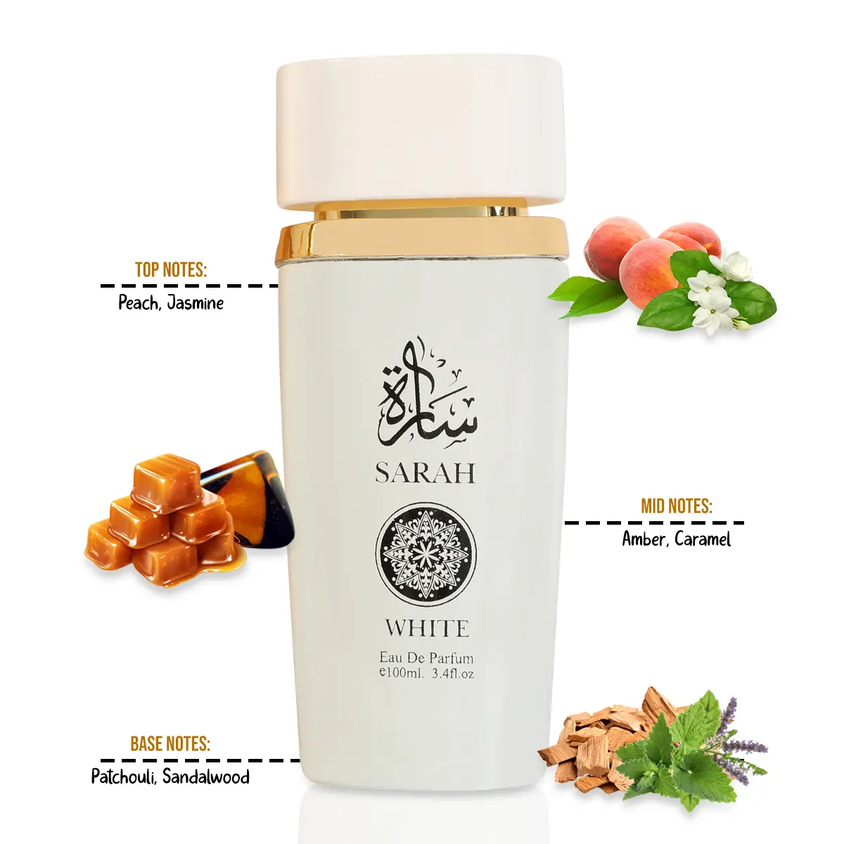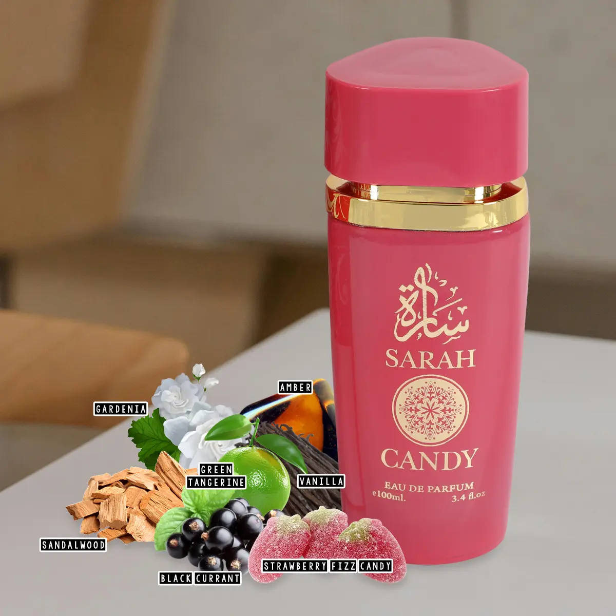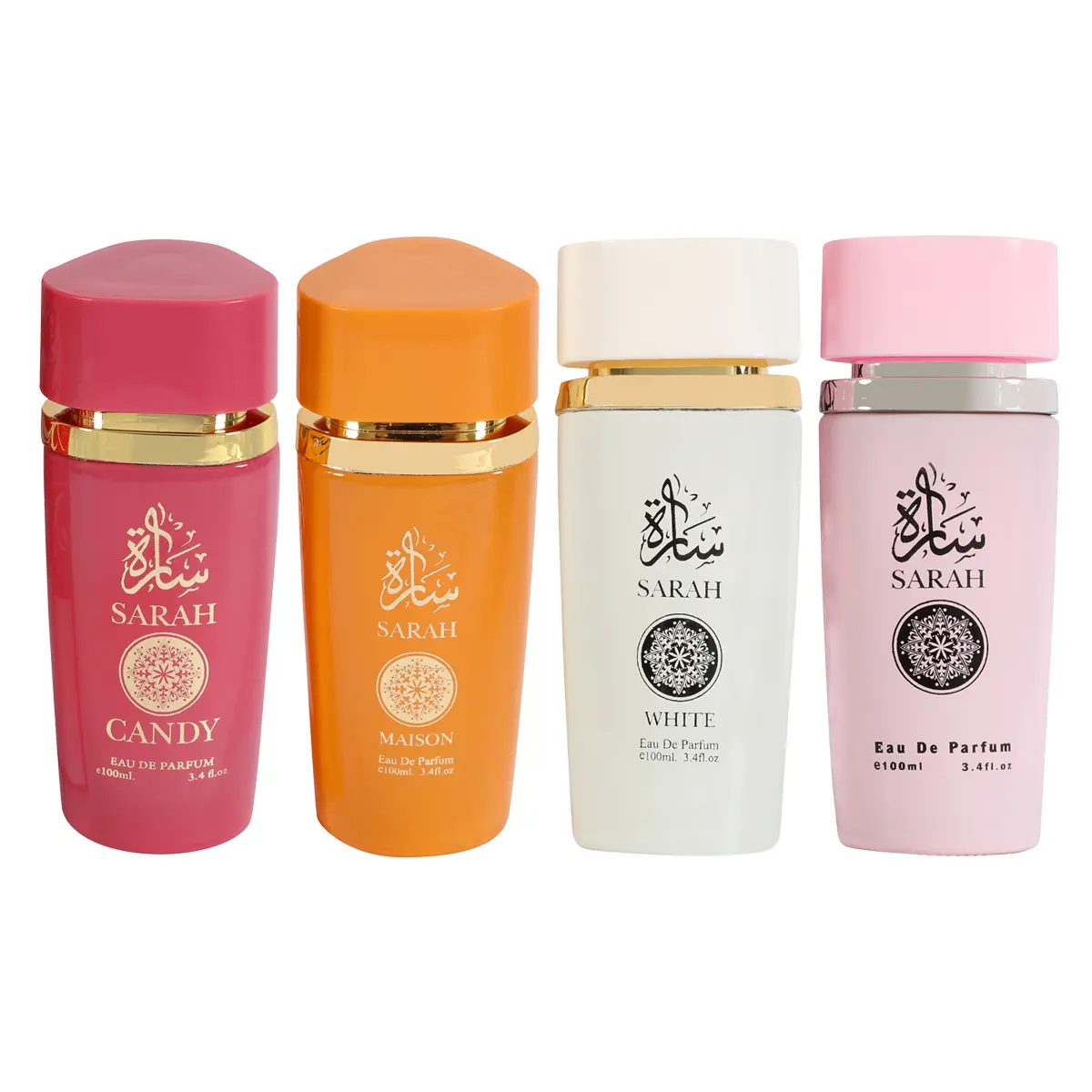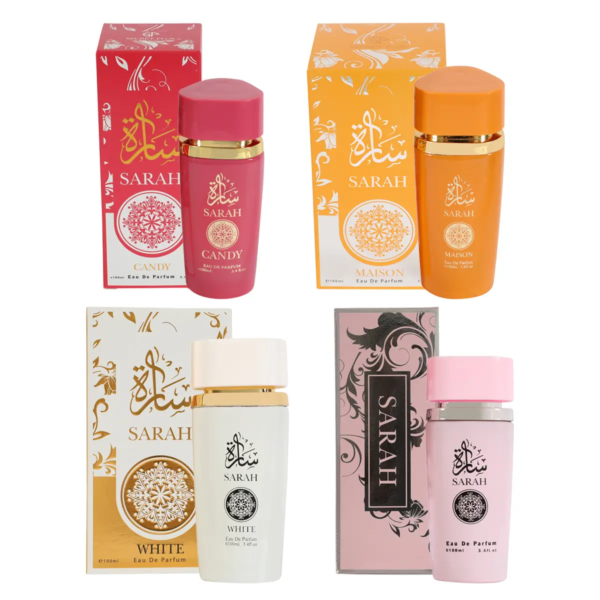 Explore the Sarah Fragrance Collection, featuring four unique scents: Sarah, Sarah Candy, Sarah Maison, and Sarah White. Each 100ml/3.4fl.oz. bottle offers a distinct aroma, perfect for any season. This perfume is your go-to for day-to-night confidence and charm.