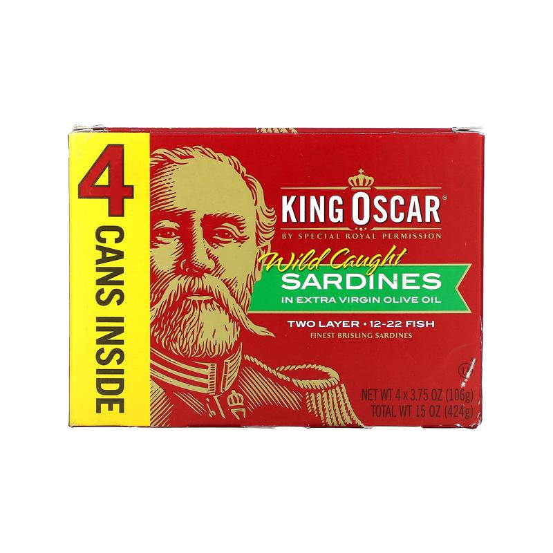5. King Oscar Wild Caught Sardines In Extra Virgin Olive Oil, 4 Cans, 3.75 oz (106 g) Each